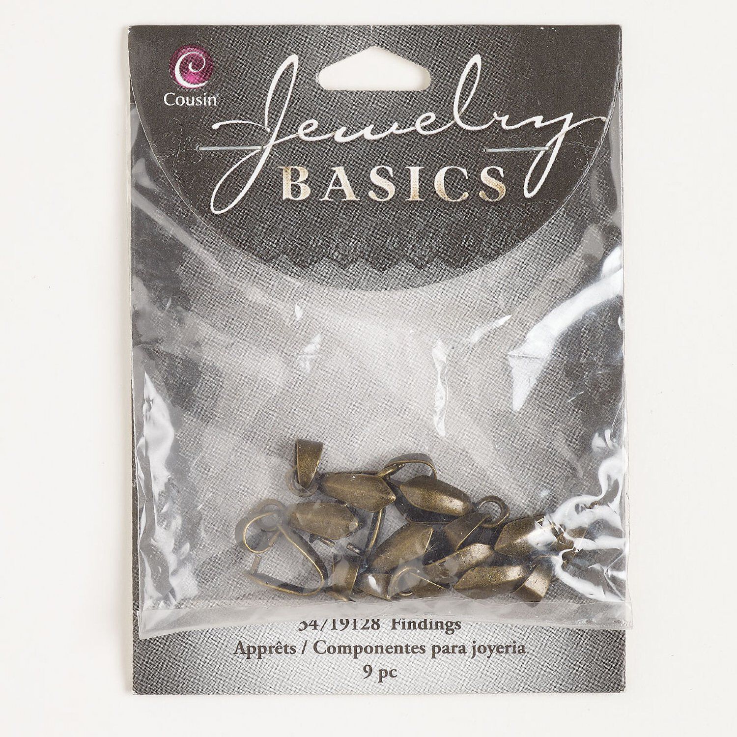 Bail, ice-pick, brass, pkg/9, 11x5mm shield with 8.2mm grip length, antique brass finish.
