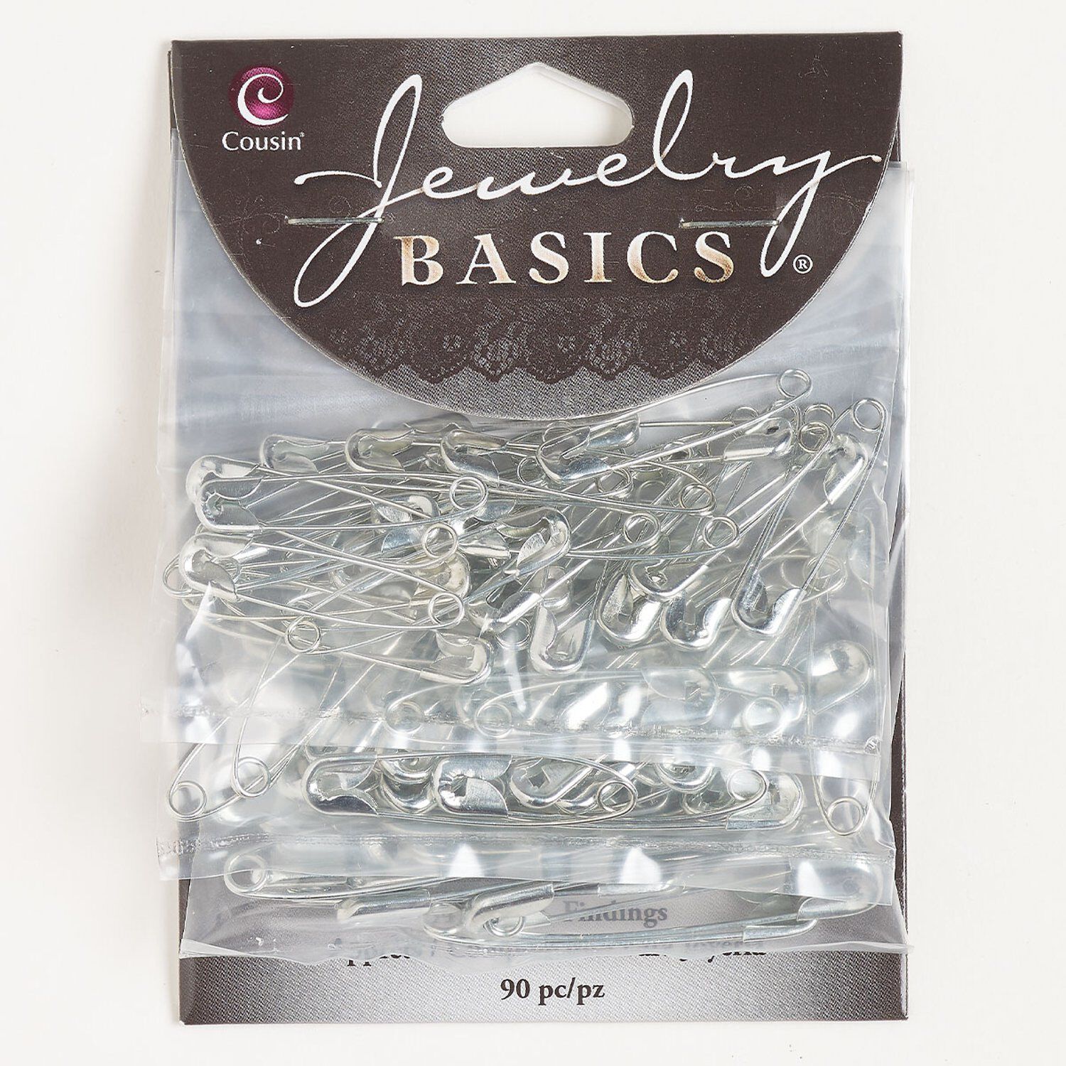 Safety pin assortment, steel, pkg/90, 1 inch to 1-1/2 inches, antique silver finish.