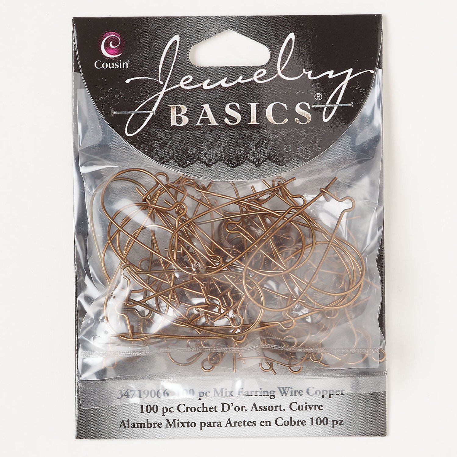 Ear wire assortment 1pkg100, 16mm fishhook / 33mm kidney / open loop, 20 / 22 gauge copper-finished steel 50 pair