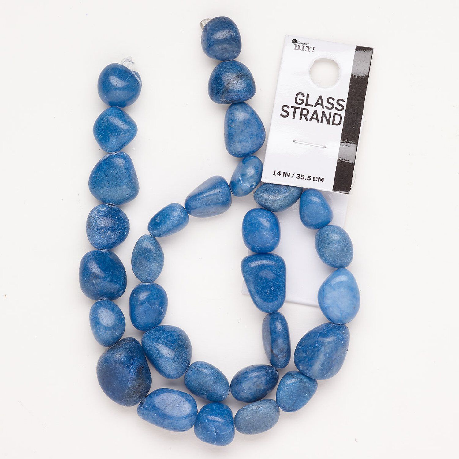 Bead glass 1pk small nugget, opaque blue 14 inch