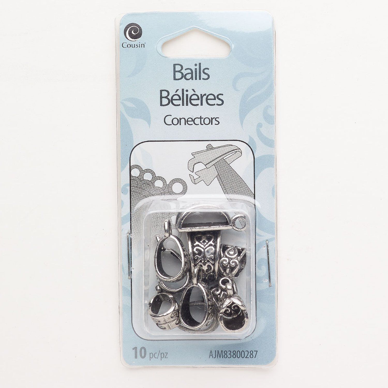 Bail assortment, "pewter" (zinc-based alloy), pkg/10, antique silver finish, 10x8mm / 13x7mm / 14x10mm.