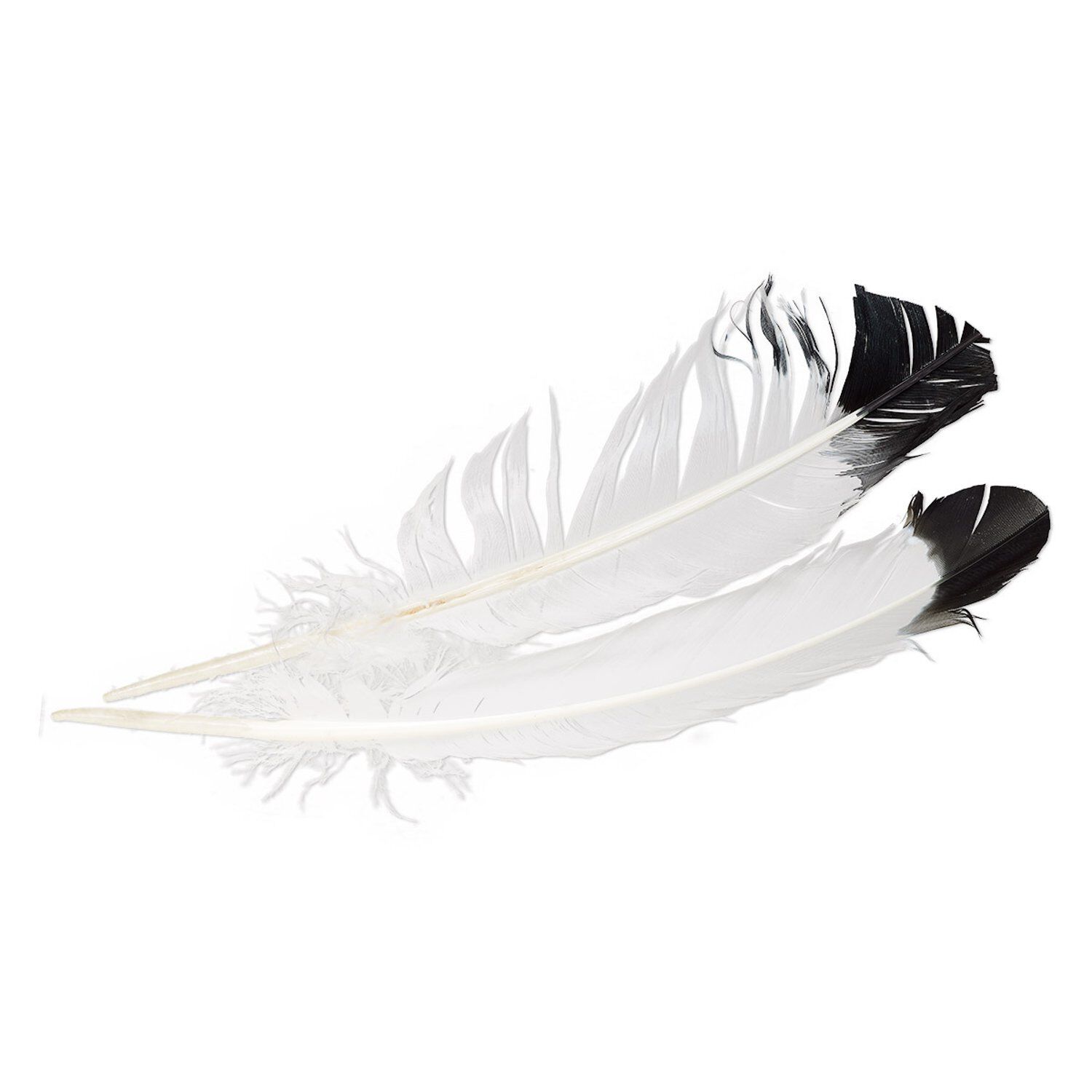 Feather, eagle (imitation), black and white, 10mm wide, 14 inches. Sold per pkg of 2.