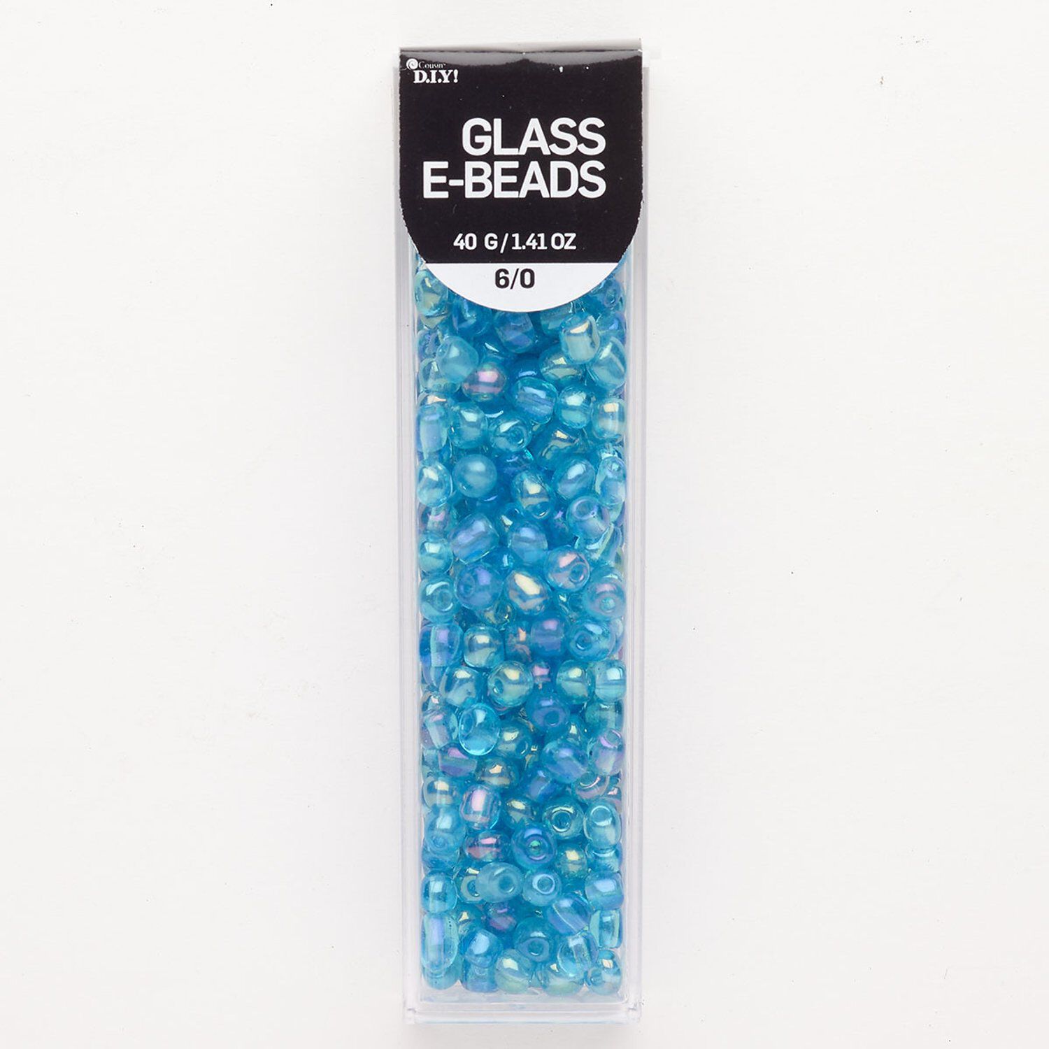 Seed bead, glass, pkg/40g, translucent iridescent aqua blue, #6 round.