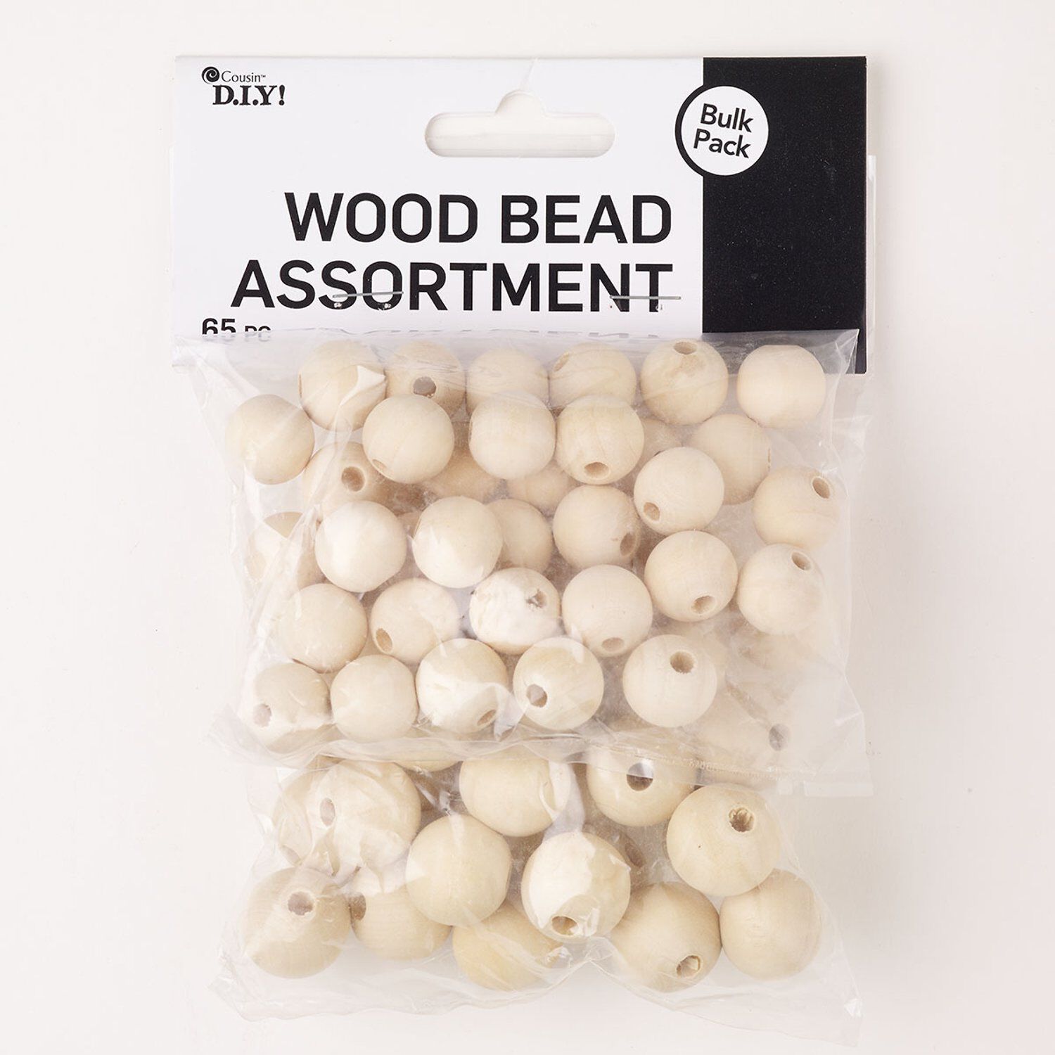 Bead mix, wood (natural), pkg/65, 15-19mm round.