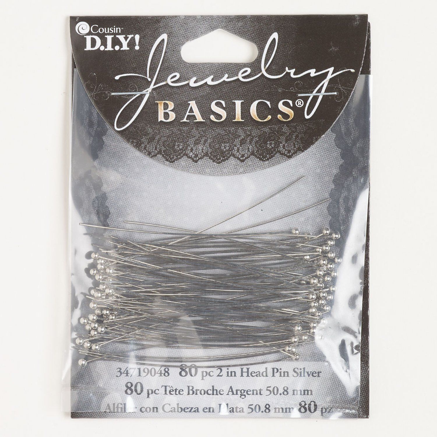 Head pin, brass, pkg/80, 2 inches with 2mm ball, 23 gauge, antique silver finish.