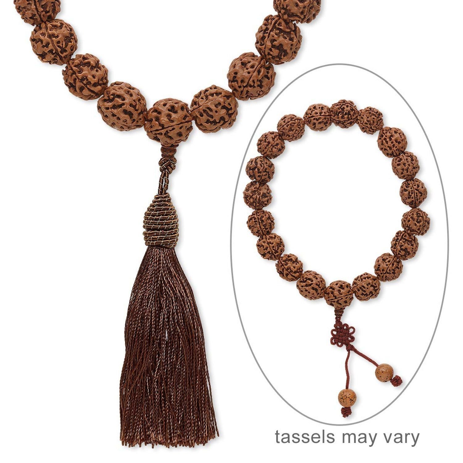 Prayer beads have been used for centuries as instruments of prayer and reflection across many religions and cultures. This Buddhist prayer necklace, called a "mala," contains 19 beads. Tassels, colors, shapes and sizes may vary in each lot.