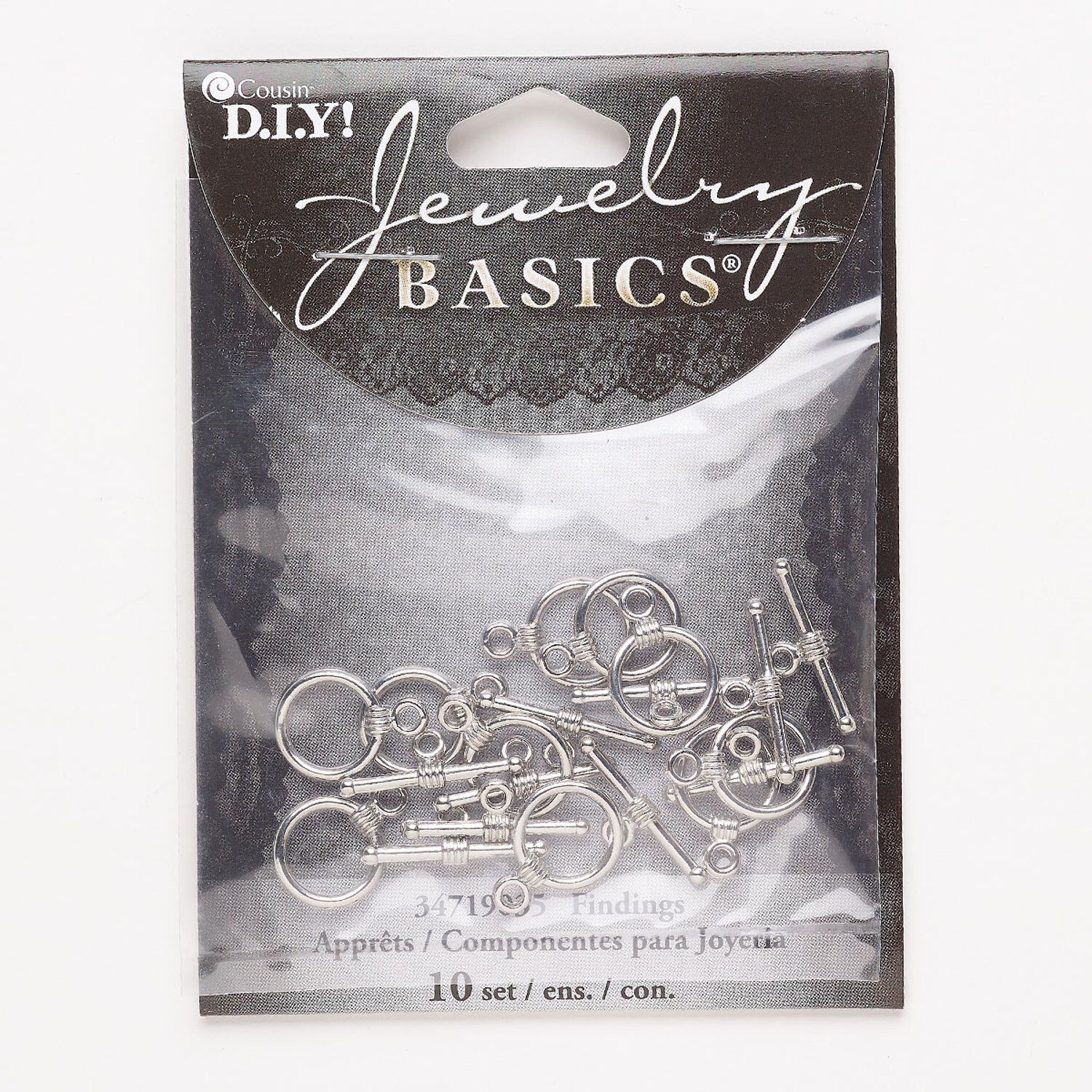 Clasp toggle 1pkg10, 12mm round, antique silver-finished brass 1-strand