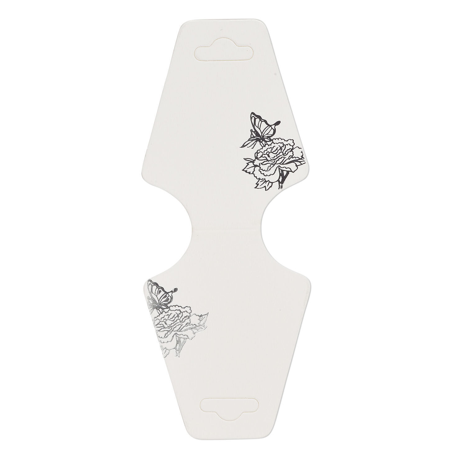 Necklace card, paper, opaque white and silver, 1-3/4 x 2-1/4 inch assembled with double-sided butterfly and flower design. Sold per pkg of 100.