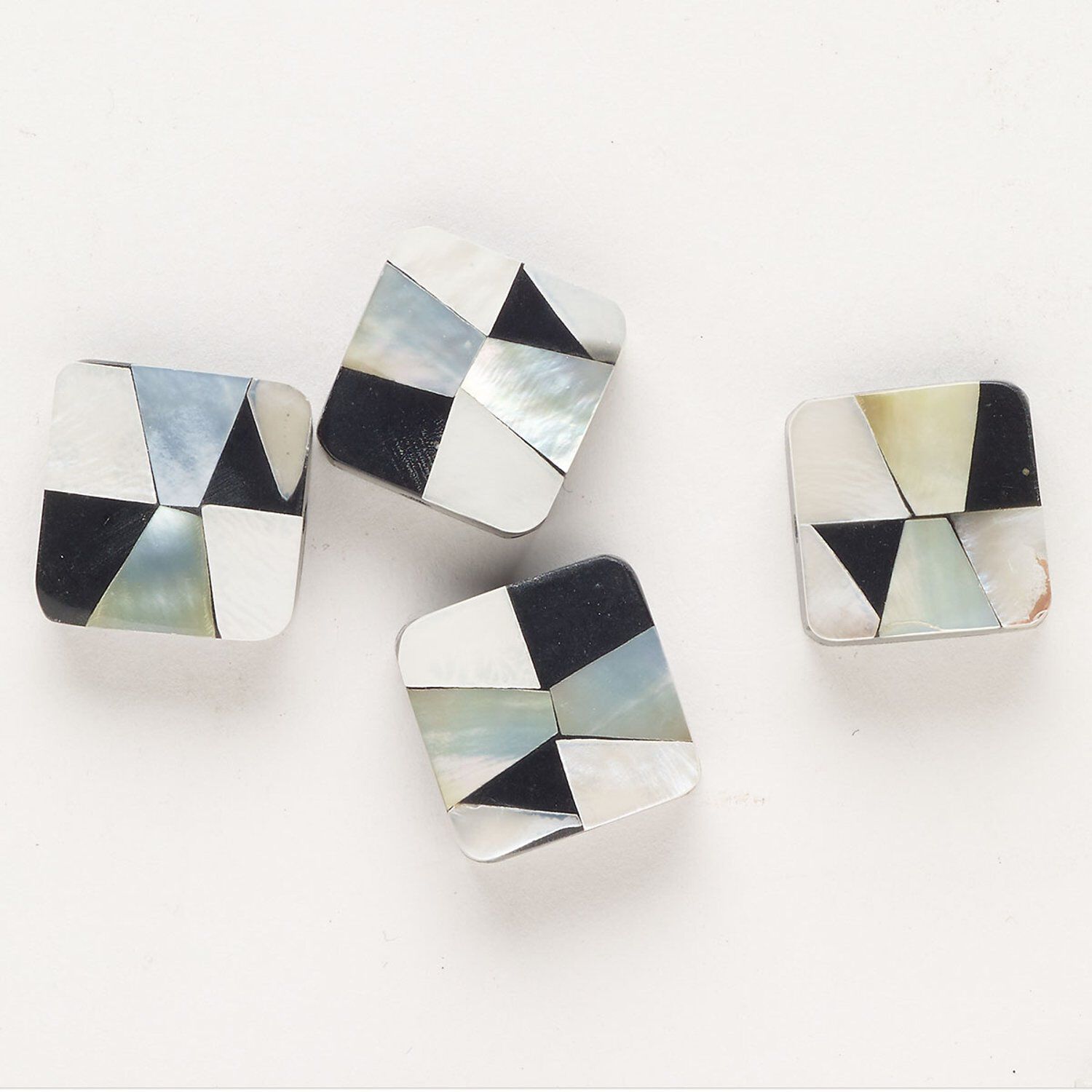 Bead, multi-shell (assembled), 15-17mm flat square, Mohs hardness 3-1/2. Sold per pkg of 4.