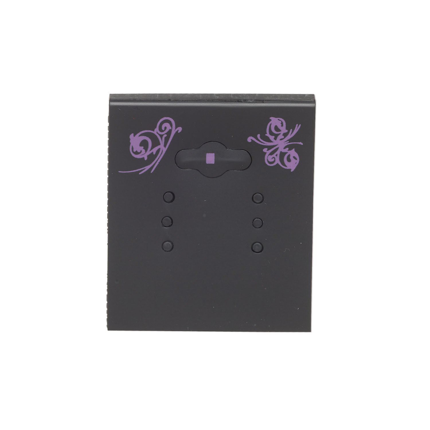 Earring card, PVC plastic, opaque black and purple, 2x1-1/2 inch square with butterfly design. Sold per pkg of 100.