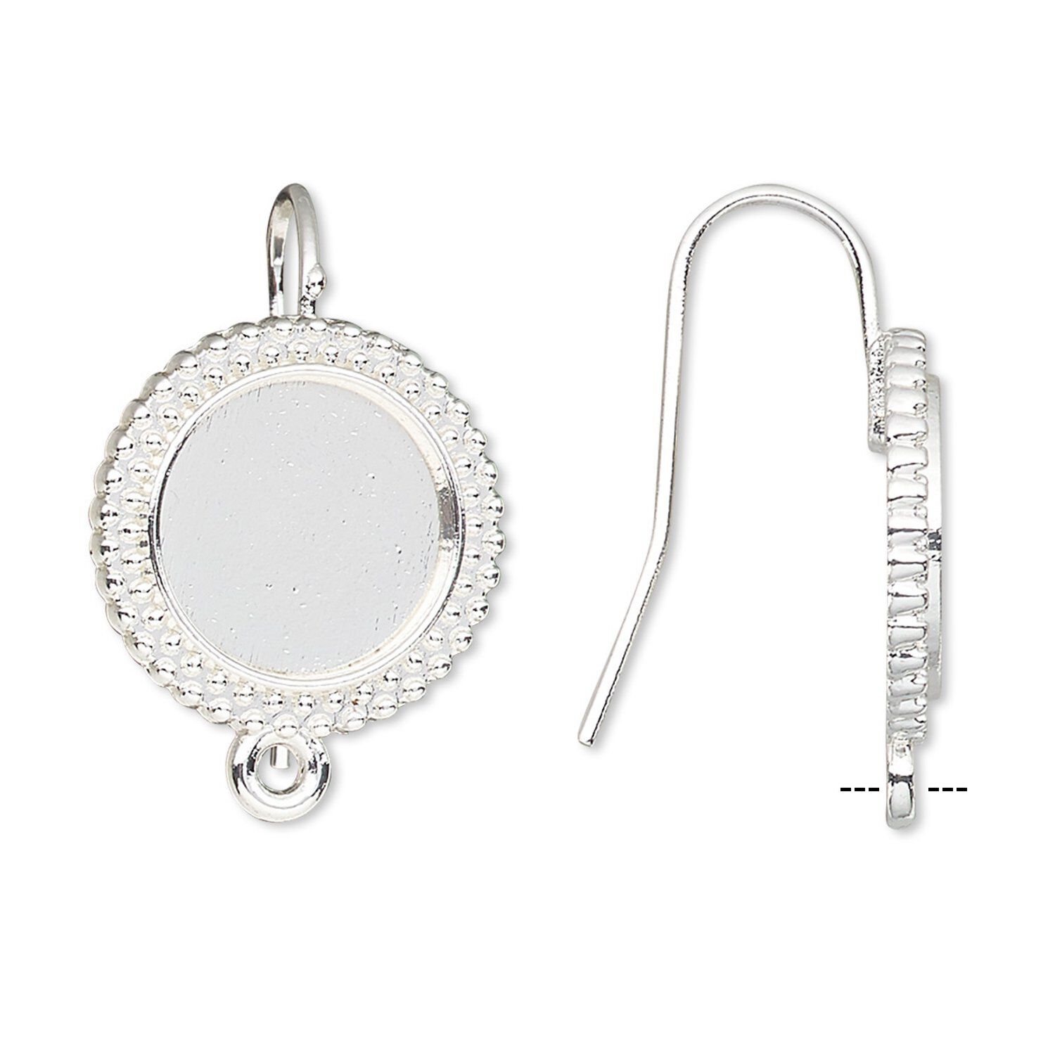 Silver-finished brass earring settings are calibrated to fit 12mm round cabochons. Loops measure 2-4mm to accommodate jump rings, eye pins or other dangles and drops. Adhere using E6000® jewelry and craft adhesive. Settings can also be filled with Apoxie® Sculpt, Vitrium® air-dry resin or polymer clays to create stunning earring designs.