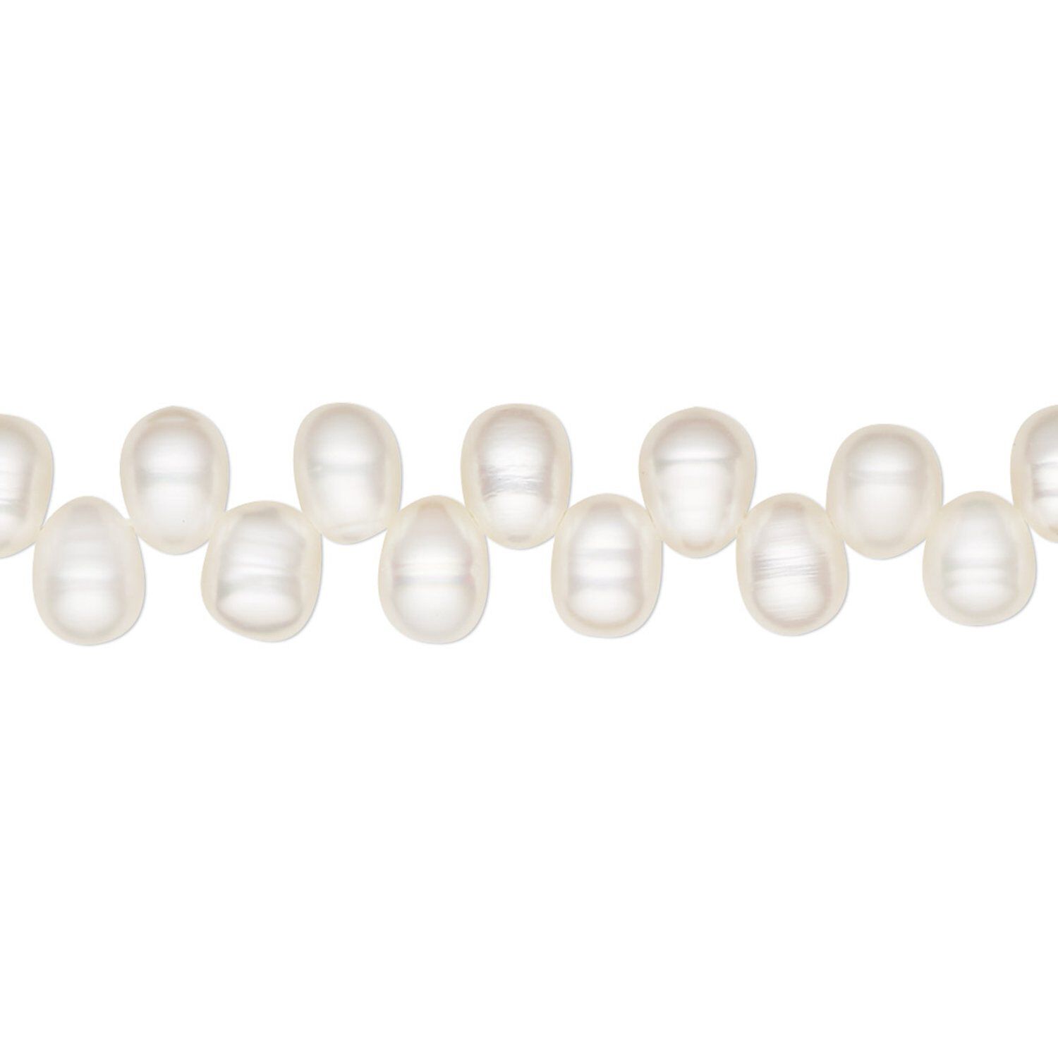 Pearl, cultured freshwater (bleached), white, 6x4mm-8x5mm top-drilled rice, C grade, Mohs hardness 2-1/2 to 4. Sold per 15-inch strand.
