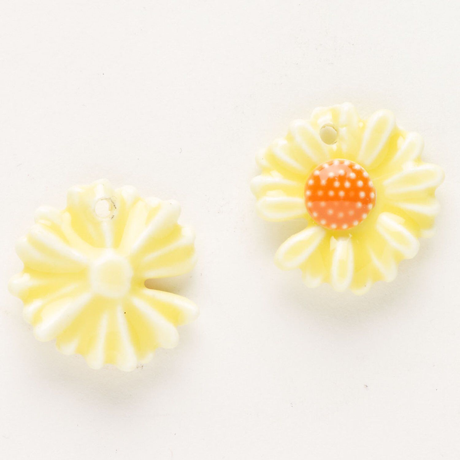 Charm, ceramic, yellow and orange, 18mm top-drilled flower. Sold per pkg of 2.