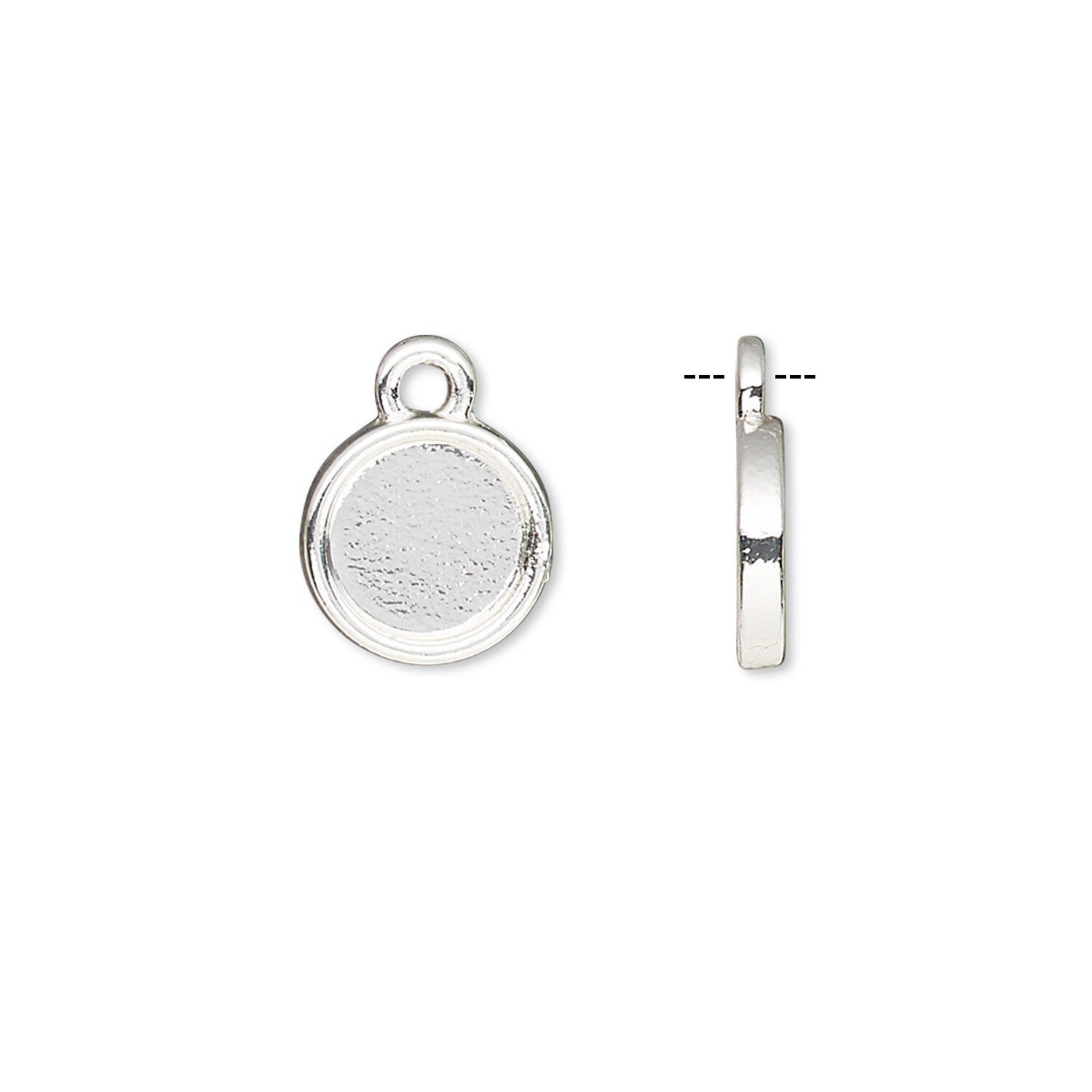 Drop, silver-finished brass, 10mm single-sided round with 8mm round setting. Sold per pkg of 10.