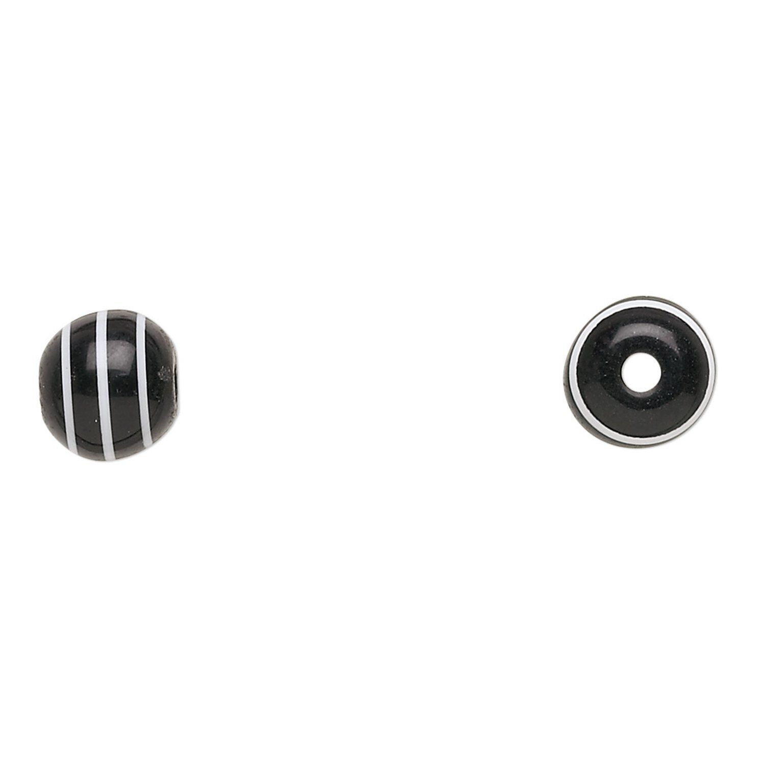 Bead, laminated acrylic, black and white, 8mm round. Sold per pkg of 100.