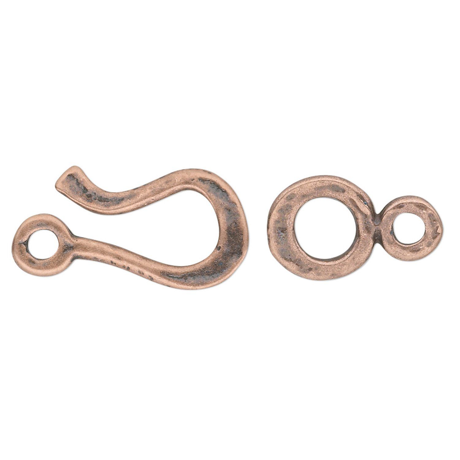 Decorative hook-and-eye clasp in pewter (tin-based alloy) is a budget-friendly alternative to precious metal. Hook-and-eye clasps easily connect the ends of bracelets and necklaces together.