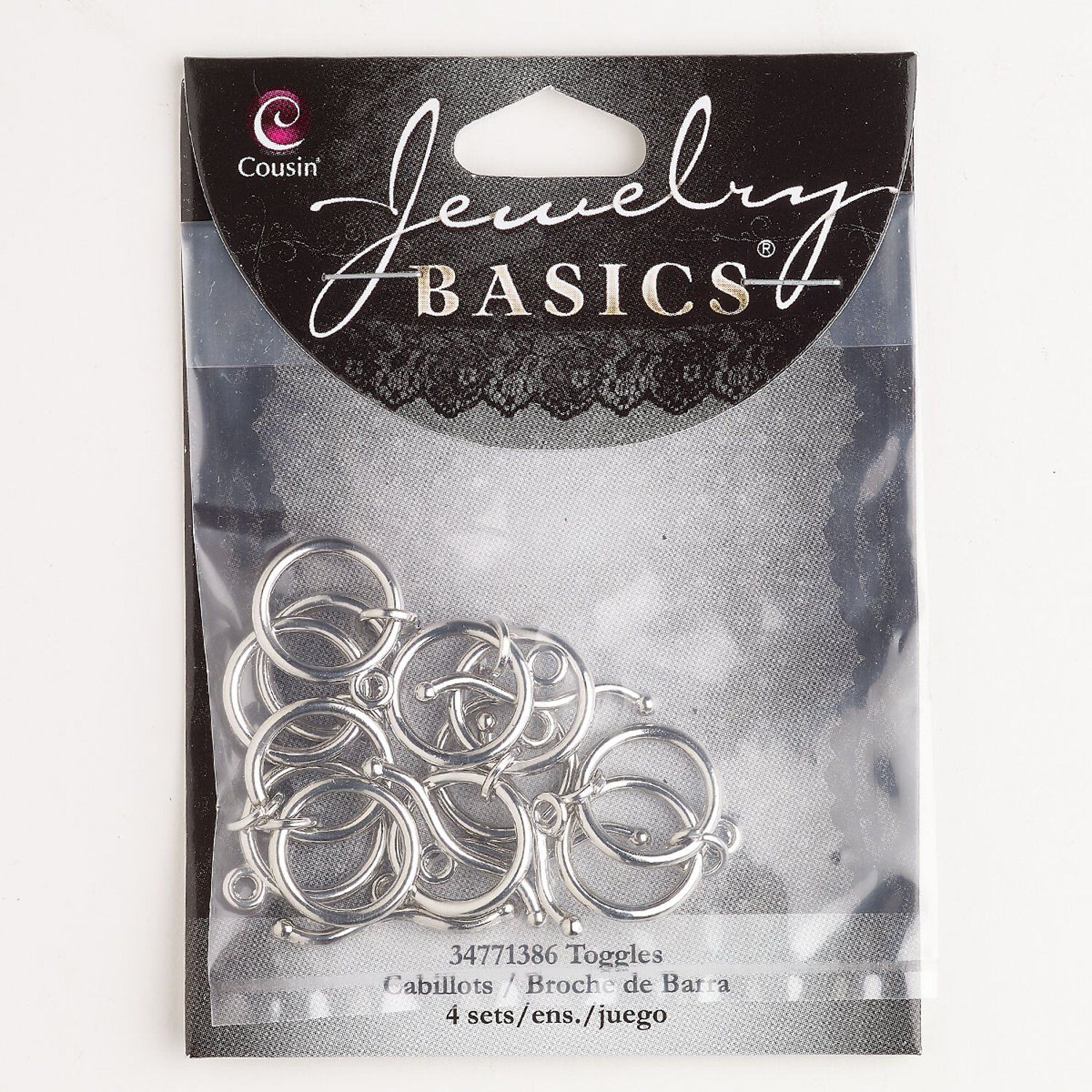 Clasp toggle 1pkg8, 14mm round, silver-finished steel 1-strand