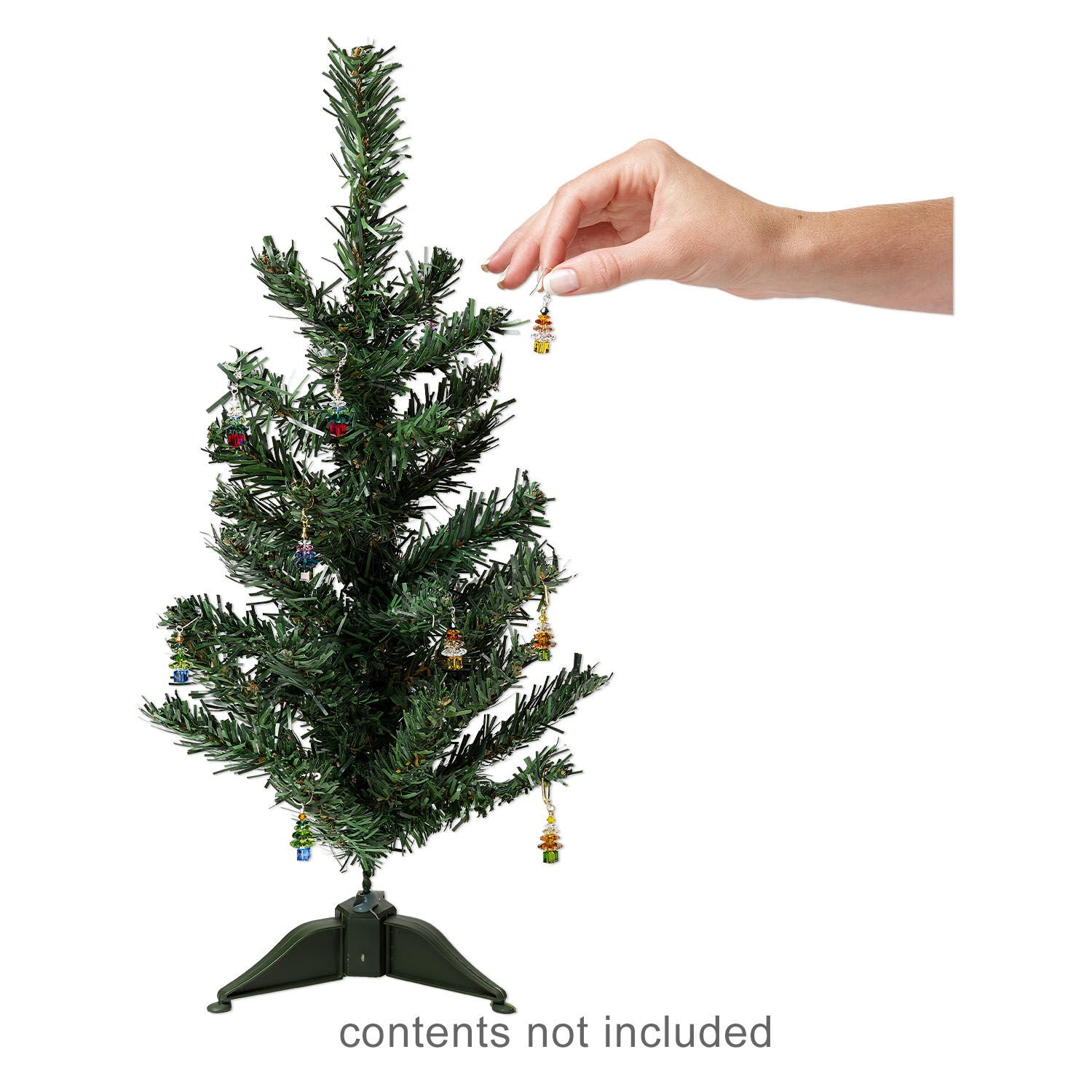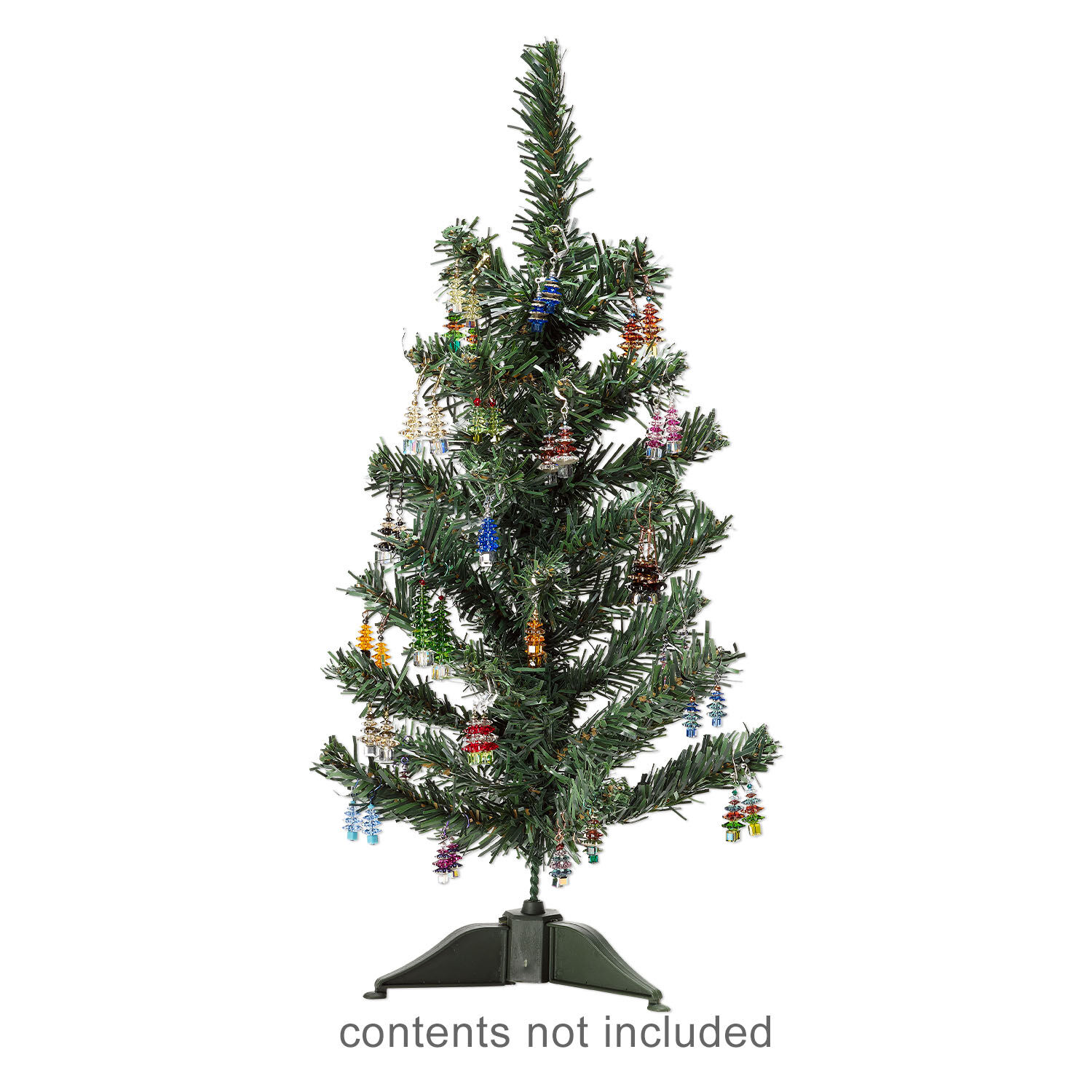 Miniature Christmas tree makes a great tabletop display during the holidays! Decorate with tiny ornaments, or use as a festive holiday jewelry display. Comes with easy-to assemble three-leg stand. Colors, shapes and sizes may vary in each lot.