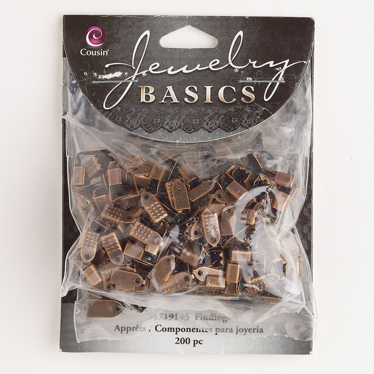 Cord end assortment, steel, pkg/200, antique copper finish, 5x4mm and 6x5mm fold-over rectangle.