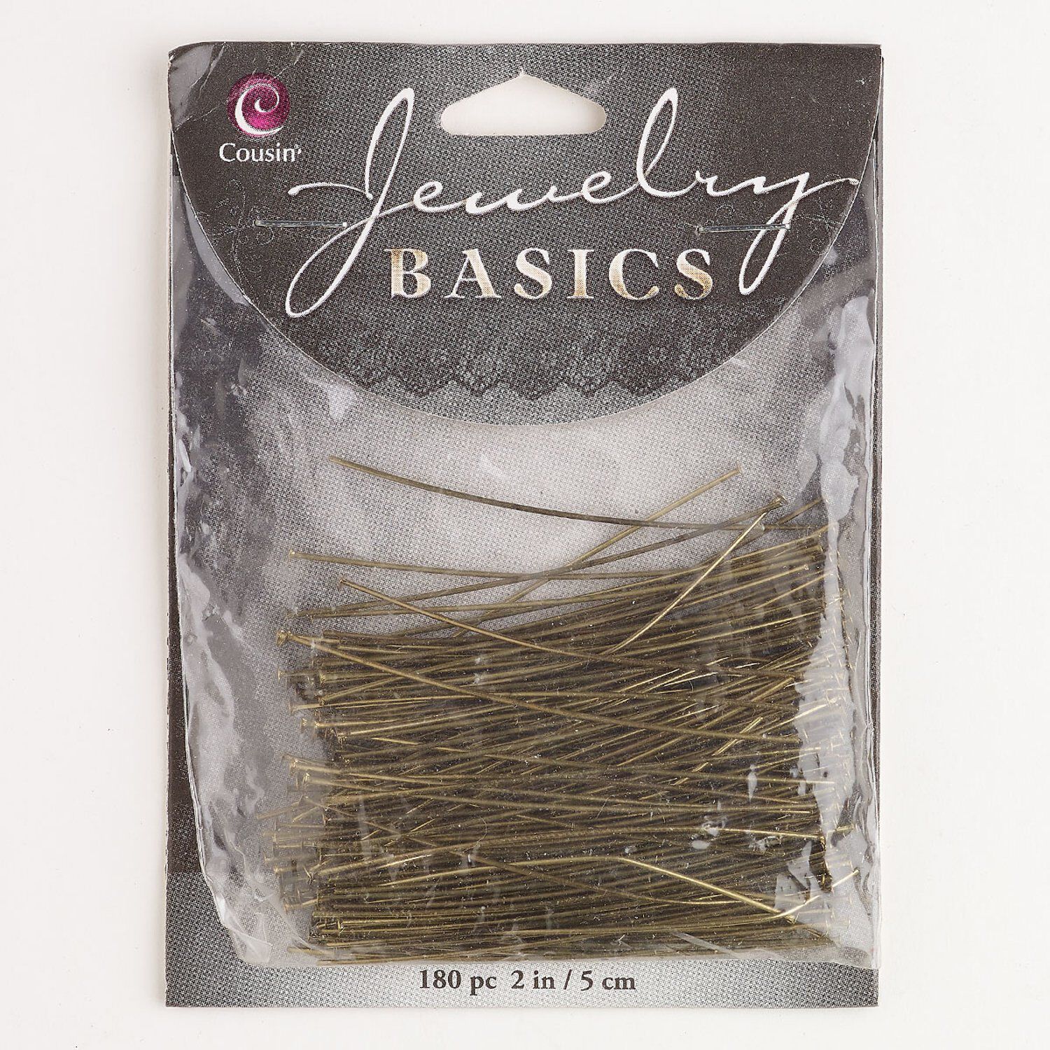 Head pin, steel, pkg/180, antique gold finish, 2 inches, 22 gauge.