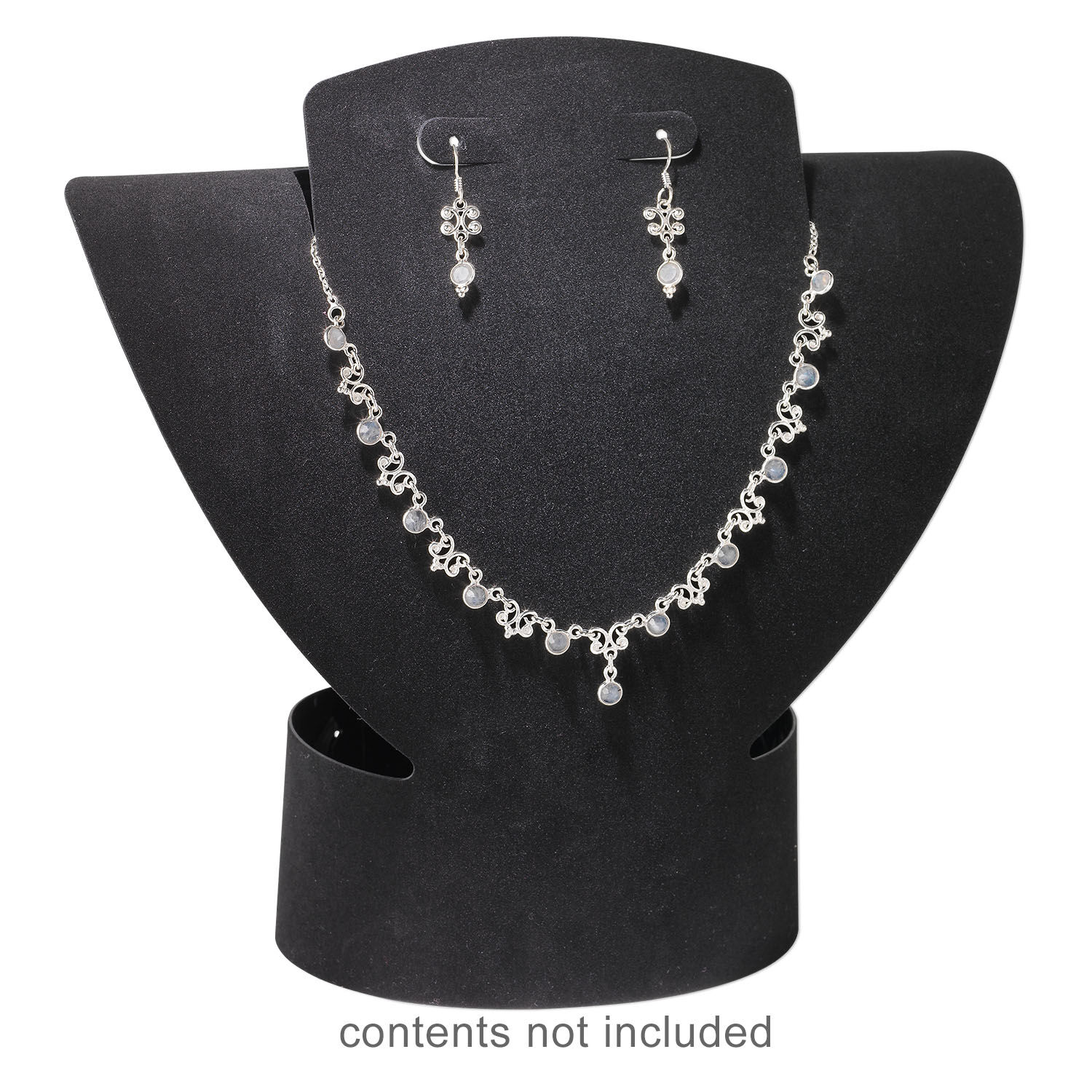 Display, foldable, necklace and earring, acrylic, flocked black, 8-3/4 x 8-1/2 x 3-1/2 inches assembled. Sold individually.
