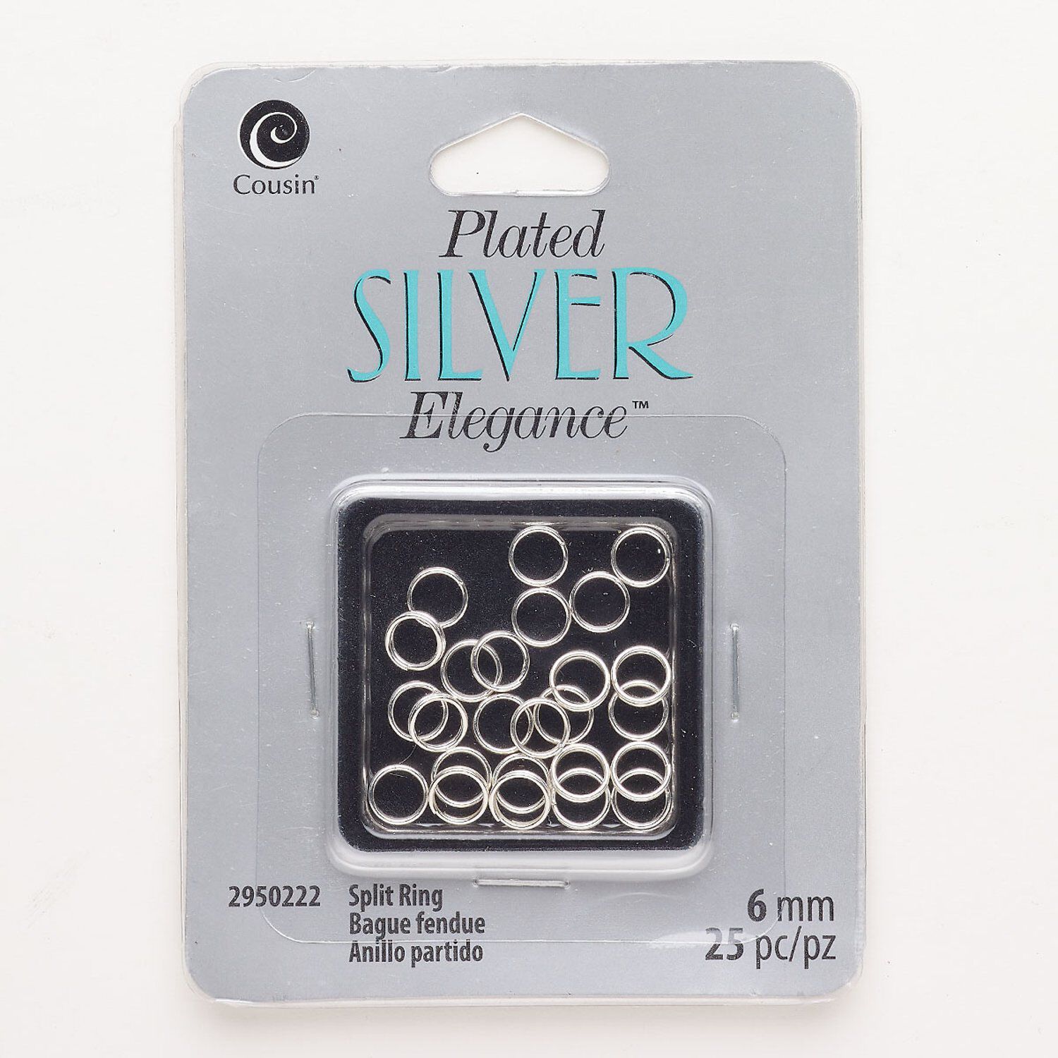 Split ring, brass, pkg/25, silver finish, 6mm round.
