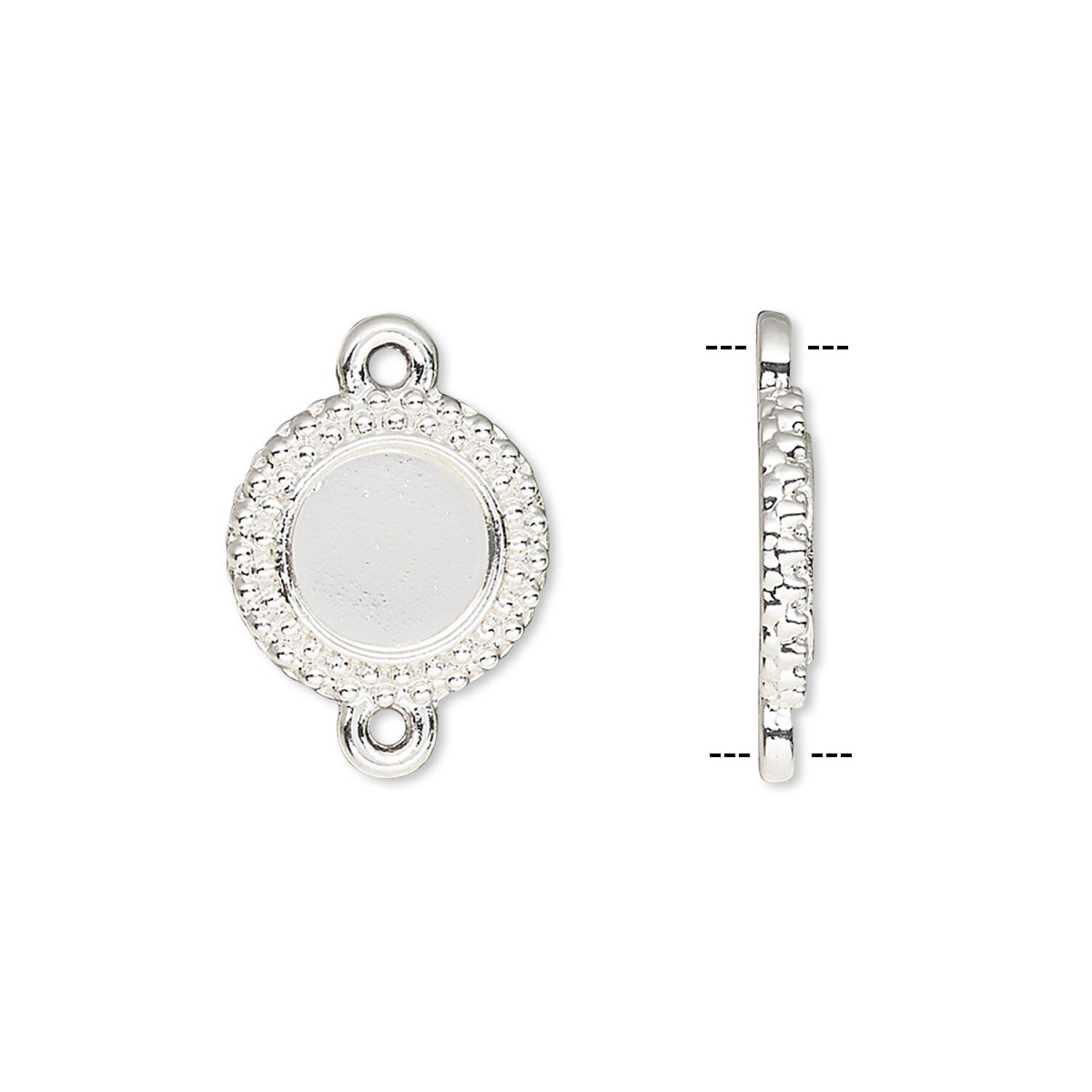 Link, silver-finished brass, 13mm single-sided beaded round with 8mm round setting. Sold per pkg of 10.