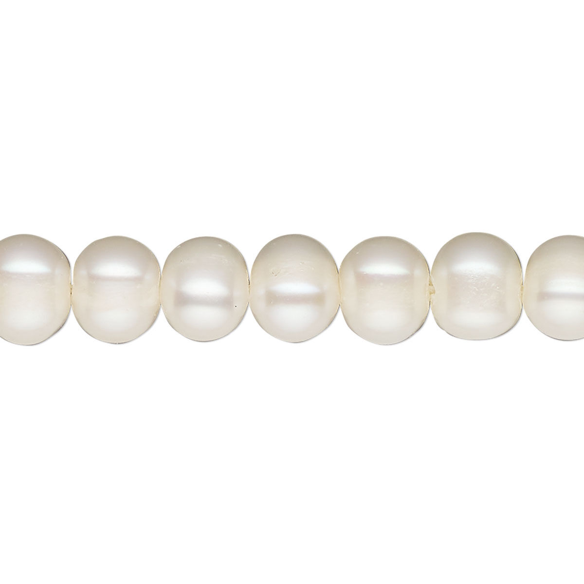 Pearl, cultured freshwater (bleached), white, 6mm semi-round, C- grade, Mohs hardness 2-1/2 to 4. Sold per 15-1/2" to 16" strand.