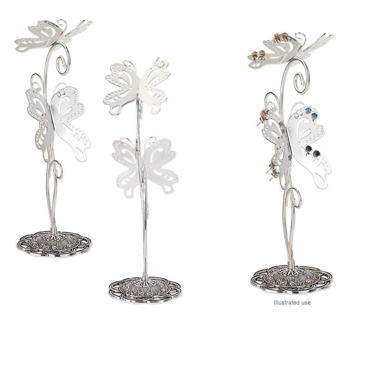 Ornate display features two butterflies and metal scrolls for a fairy tale-inspired style. Metal jewelry displays are great for showcasing jewelry at home or in retail spaces. Holds up to 50 pairs of earrings.