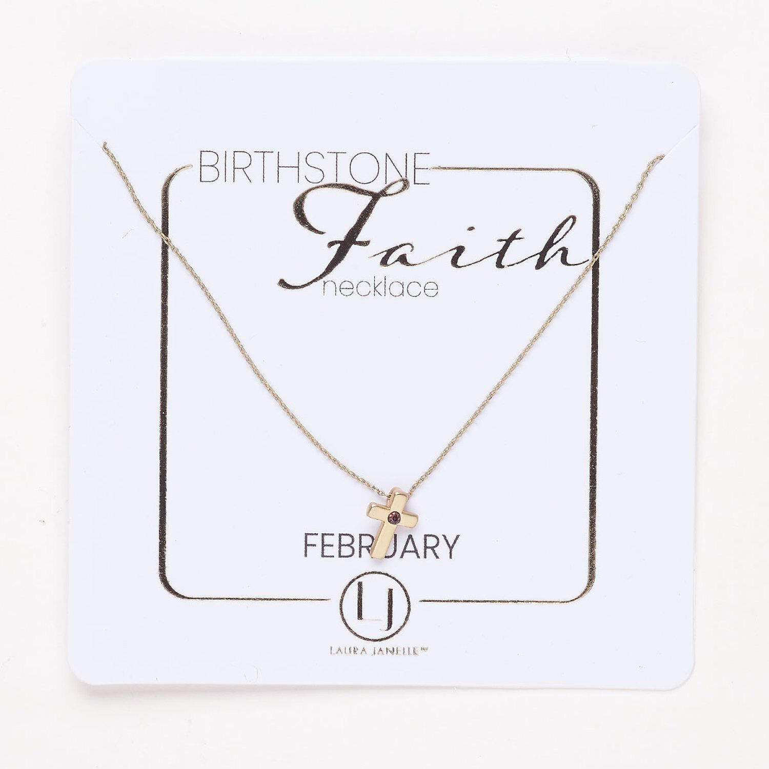 Necklace, steel and glass, pkg/16 inches with lobster claw clasp and 3-inch extender chain, 10x7mm February birthstone cross, gold finish and amethyst purple.