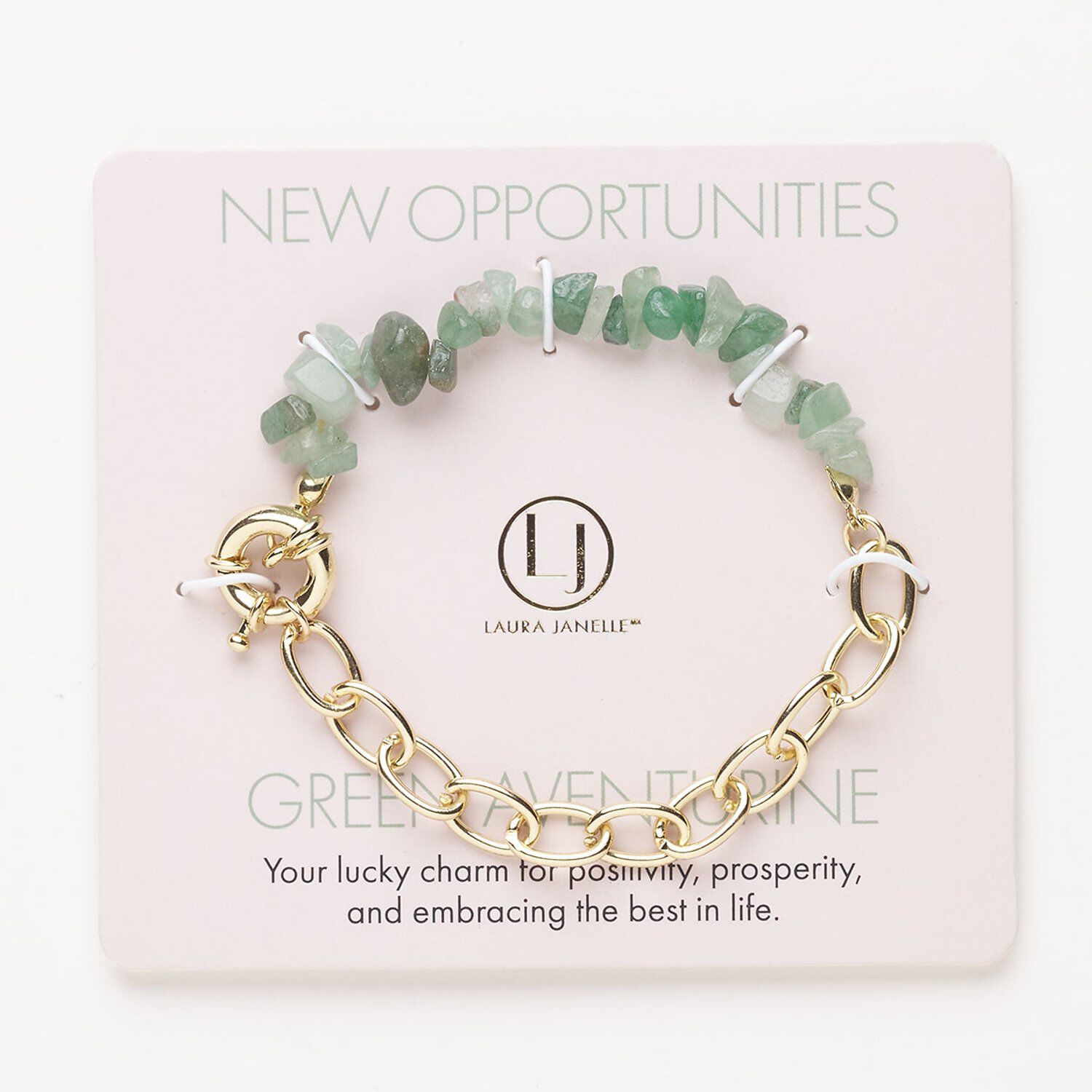 Bracelet, steel / brass / green aventurine (natural), pkg/1, 6 inches with springring clasp, gold finish.