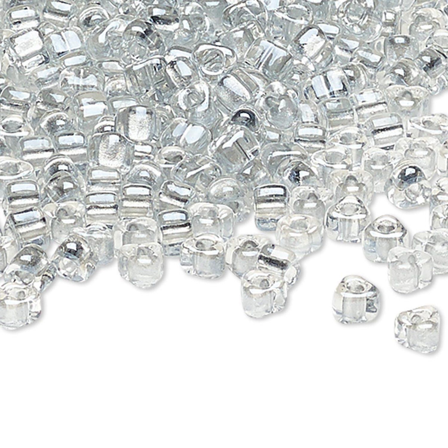 Seed bead, Miyuki, glass, transparent clear color-lined platinum, (TR1105), #5 triangle. Sold per 250-gram pkg.