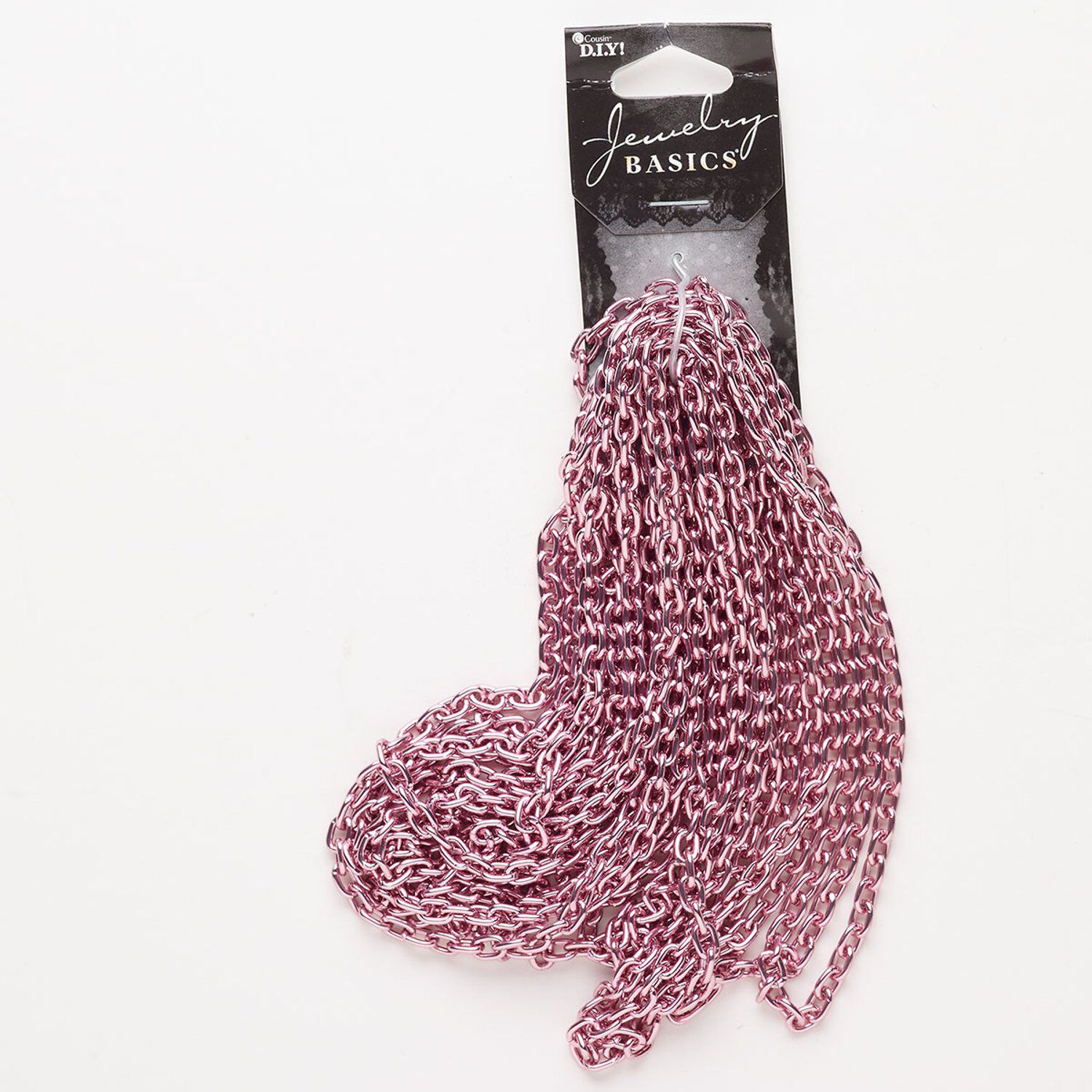 Chain, anodized aluminum, pkg/160 inches, 4mm oval rolo, pink.