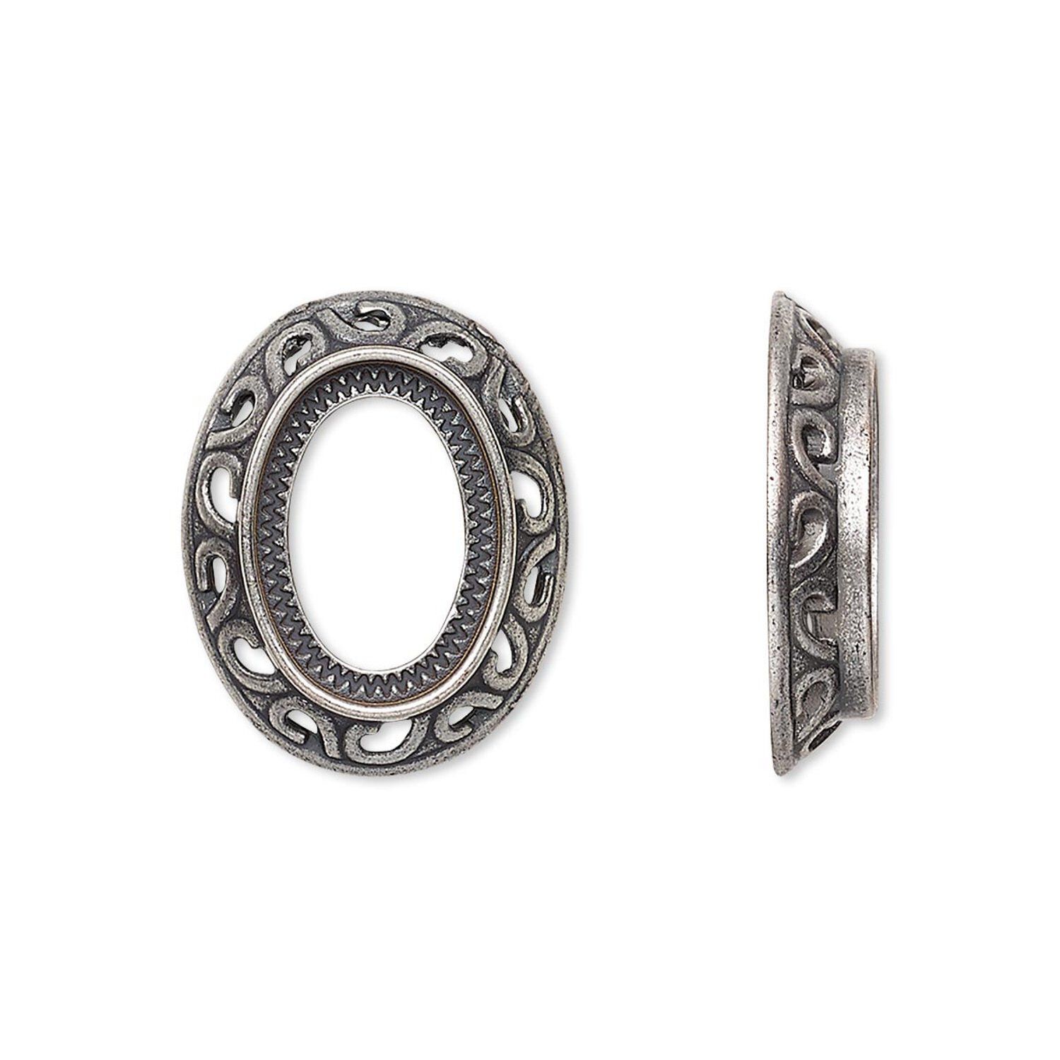 Component, antique silver-plated brass, 20x16mm oval with swirl design and 14x10mm oval setting. Sold per pkg of 10.