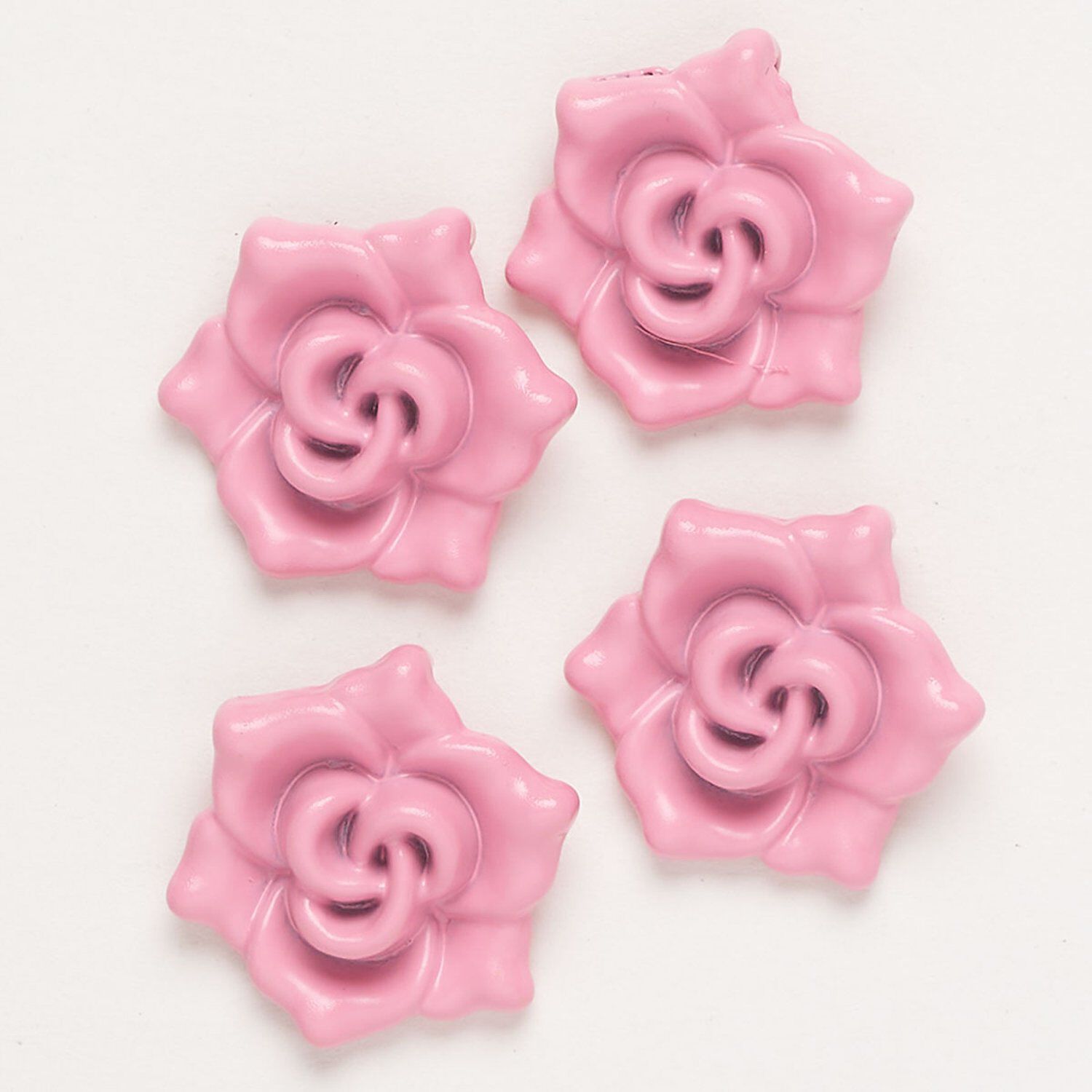 Charm, "pewter" (zinc-based alloy) and enamel, pink, 18x16mm flower with hidden loop. Sold per pkg of 4.