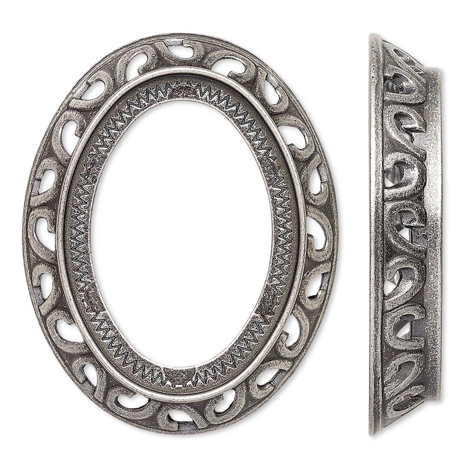 Component, antique silver-plated brass, 38x30mm oval with swirl design and 30x22mm oval setting. Sold per pkg of 4.