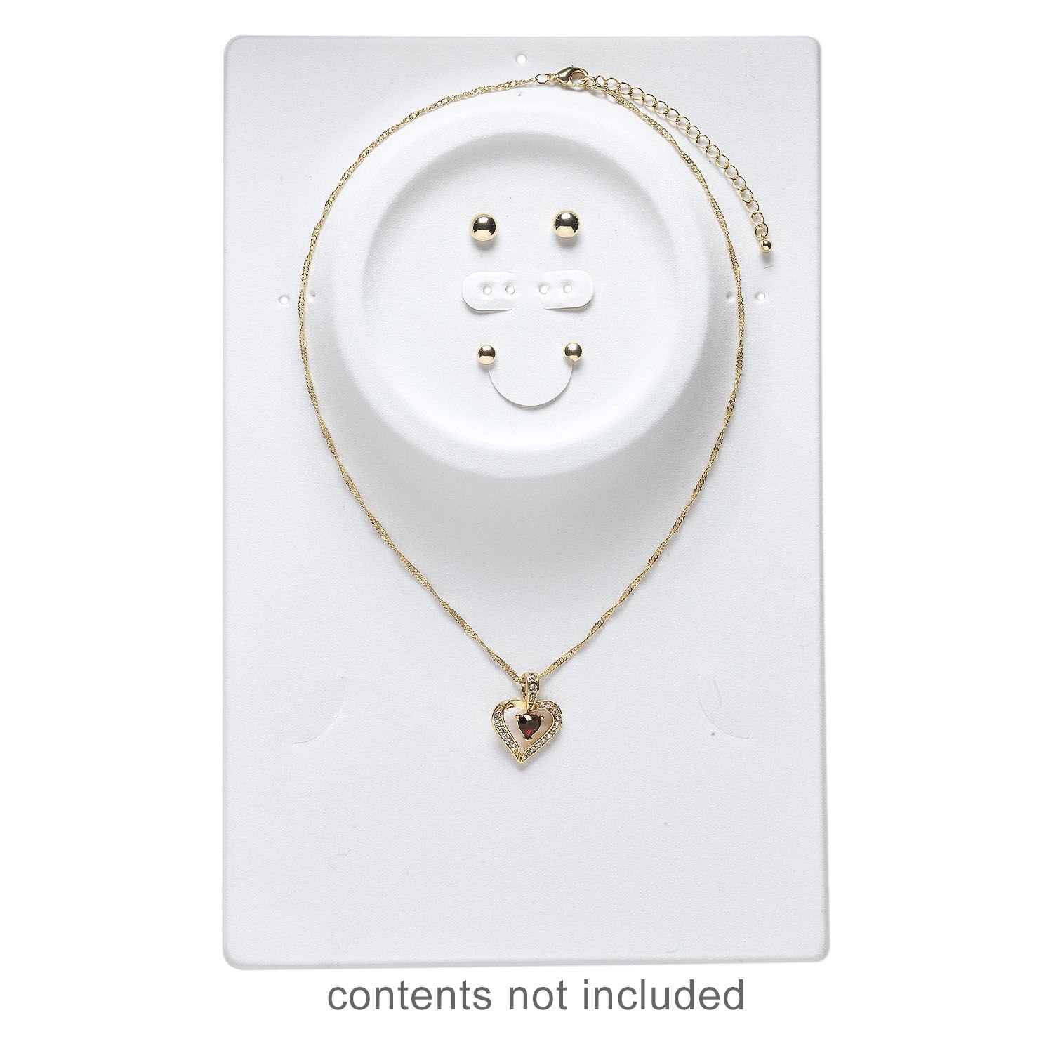 White velveteen displays can hold a necklace or bracelet and earrings. Affordable and lightweight, displays are ideal for traveling to craft fairs and shows. Plush velveteen material and a durable tear-resistant base combine quality and elegance. Sold per economical package of four.