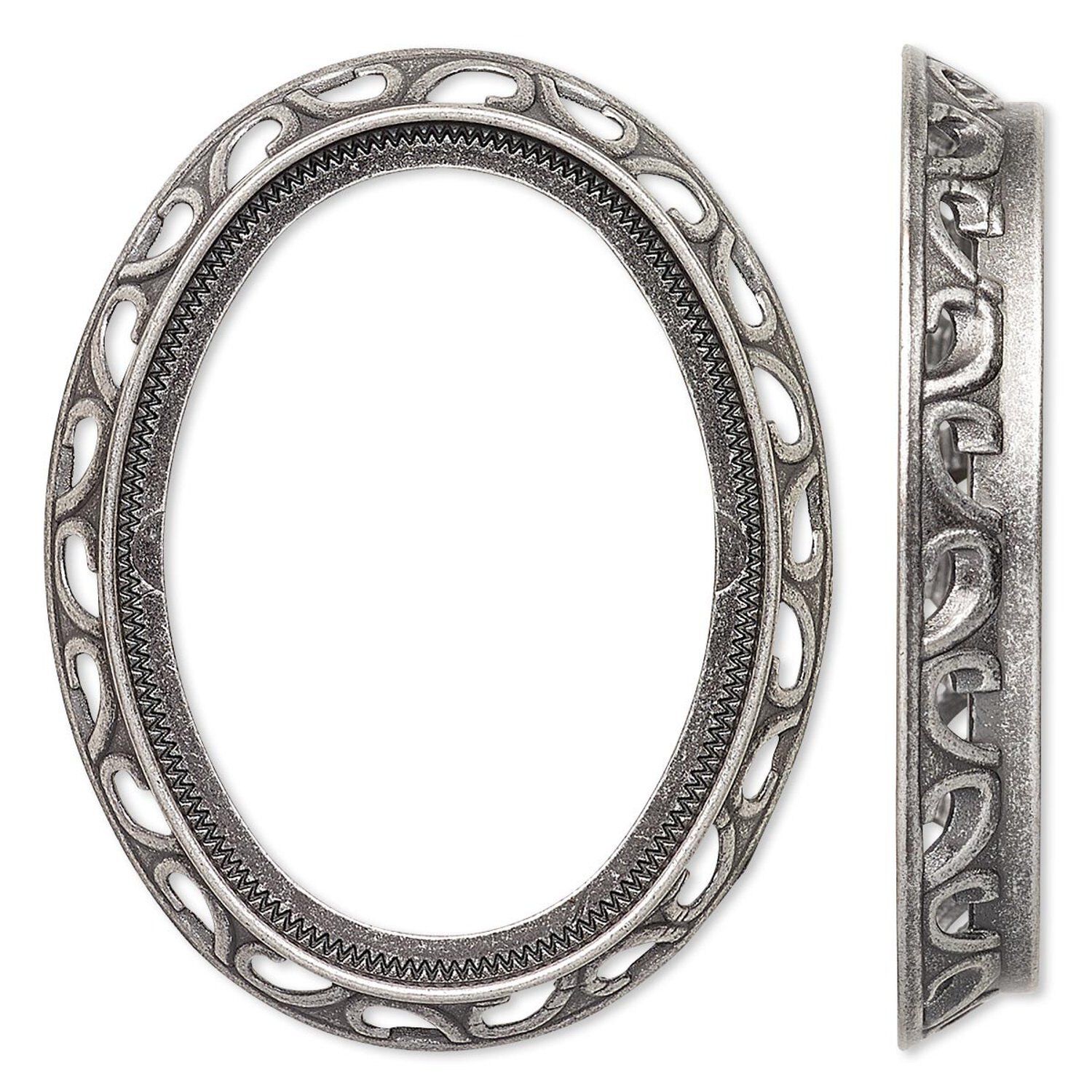 Component, antique silver-plated brass, 48x38mm oval with swirl design and 40x30mm oval setting. Sold per pkg of 4.