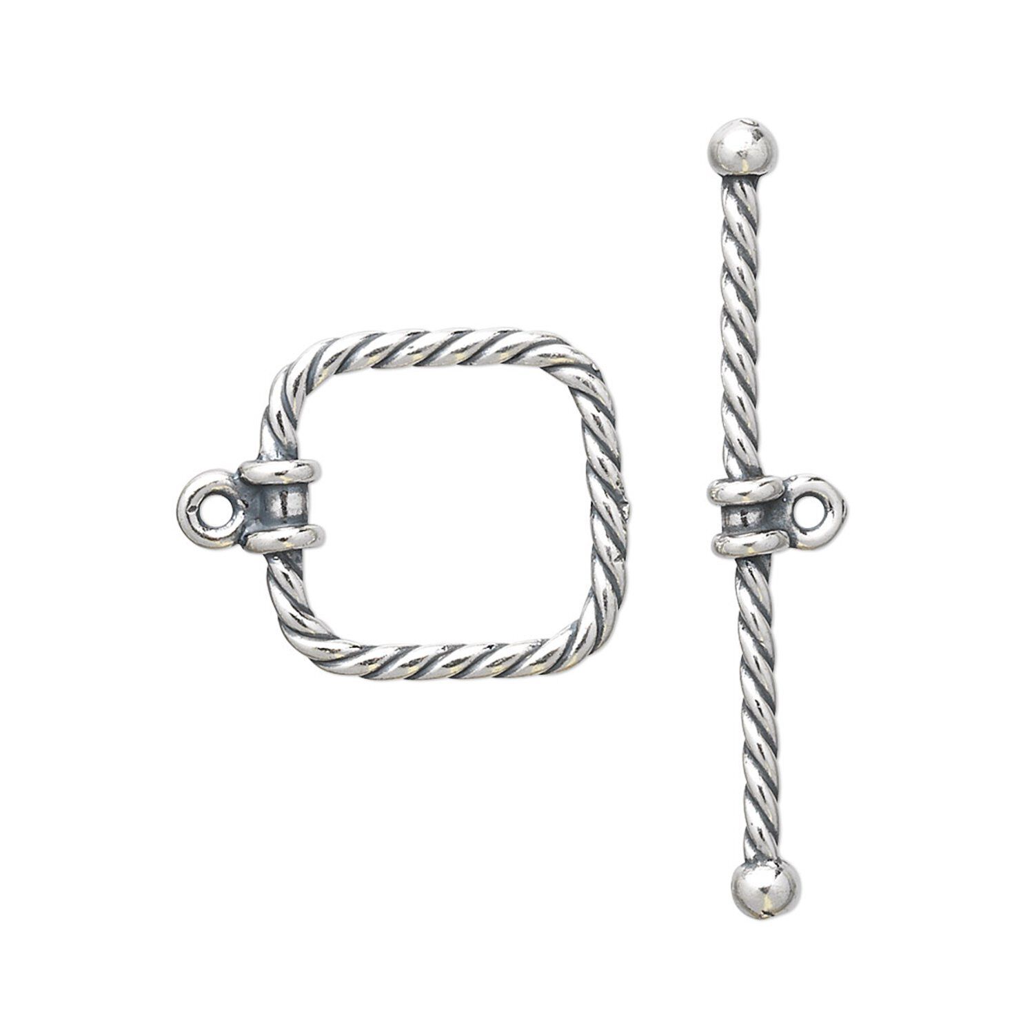 Clasp toggle 1pkg1 sterling silver, 15mm twisted square, antiqued JBB Findings 1-strand