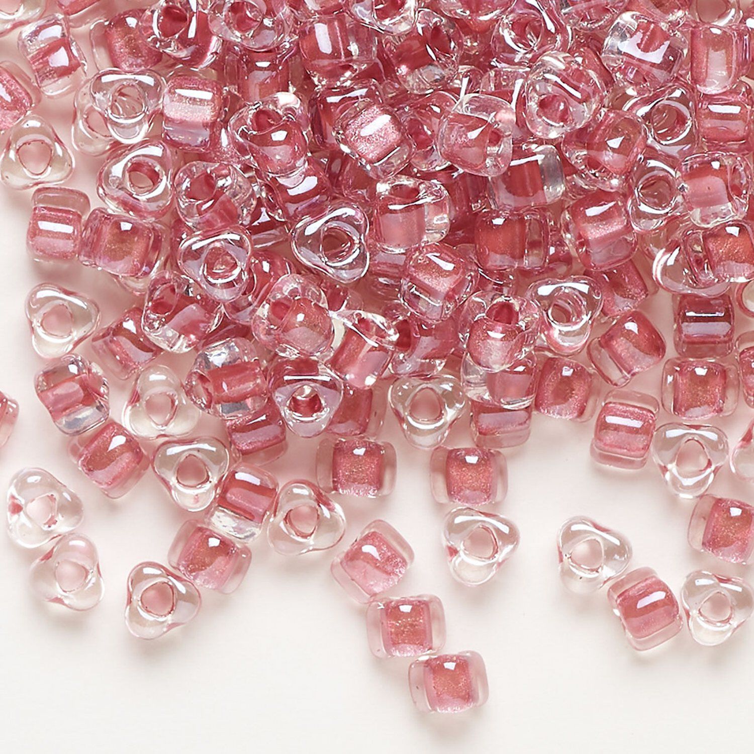 Seed bead, Miyuki, glass, transparent clear color-lined rose, (TR1132), #5 triangle. Sold per 25-gram pkg.