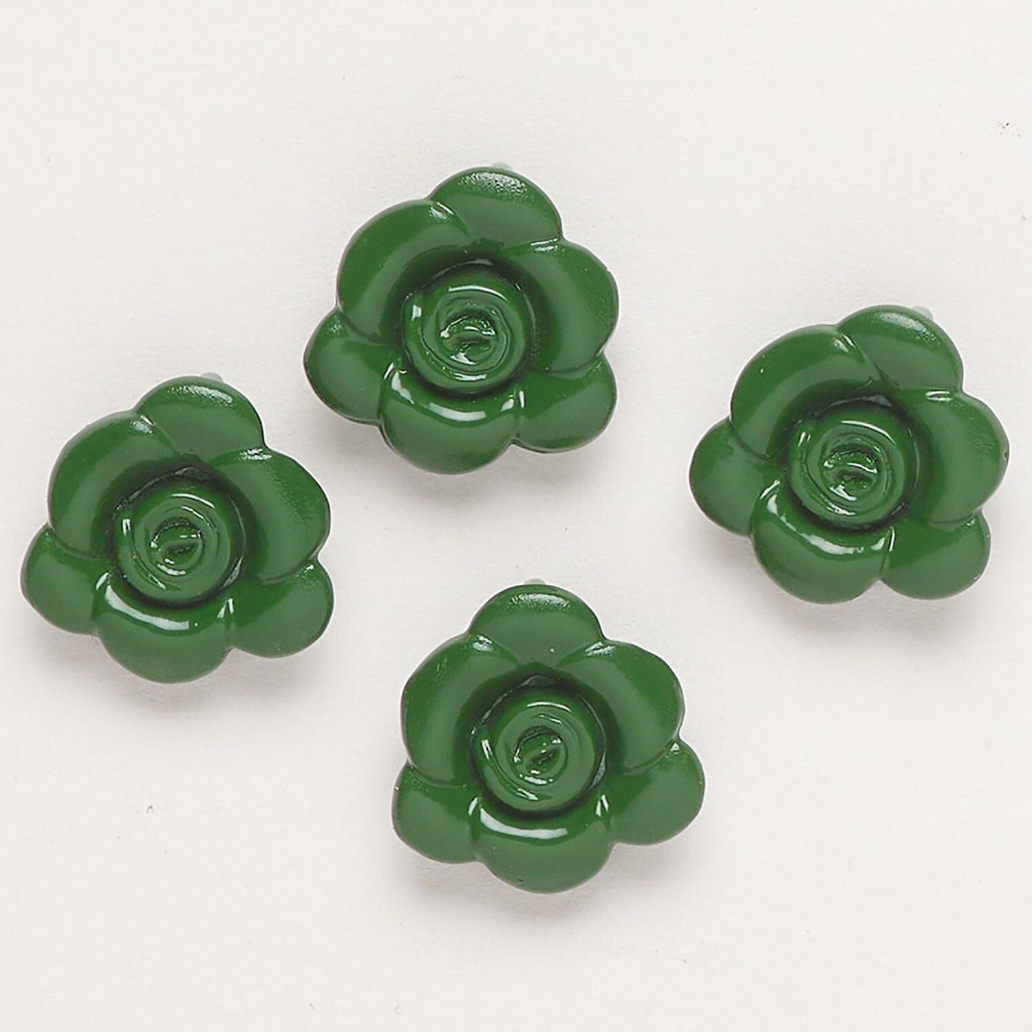 Charm, "pewter" (zinc-based alloy) and enamel, dark green, 13-14mm flower with hidden loop. Sold per pkg of 4.