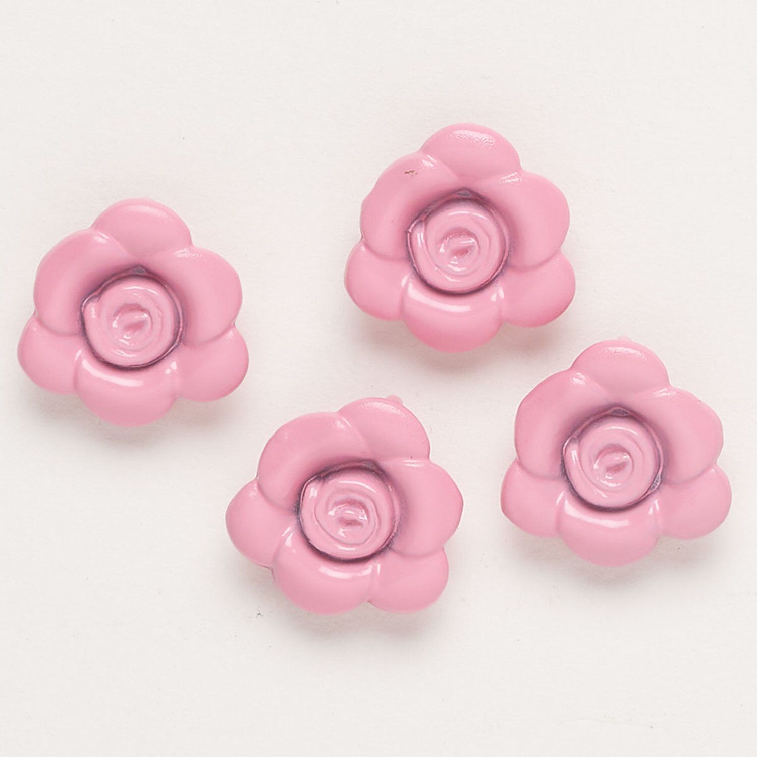 Charm, "pewter" (zinc-based alloy) and enamel, pink, 13-14mm flower with hidden loop. Sold per pkg of 4.