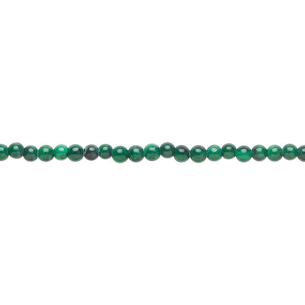 Gem-quality, finely banded malachite is a blend of lush medium and dark greens. Natural color variation occurs within each bead, ranging from light to dark--no two strands or beads are exactly alike. Rough is from Zaire, Africa.