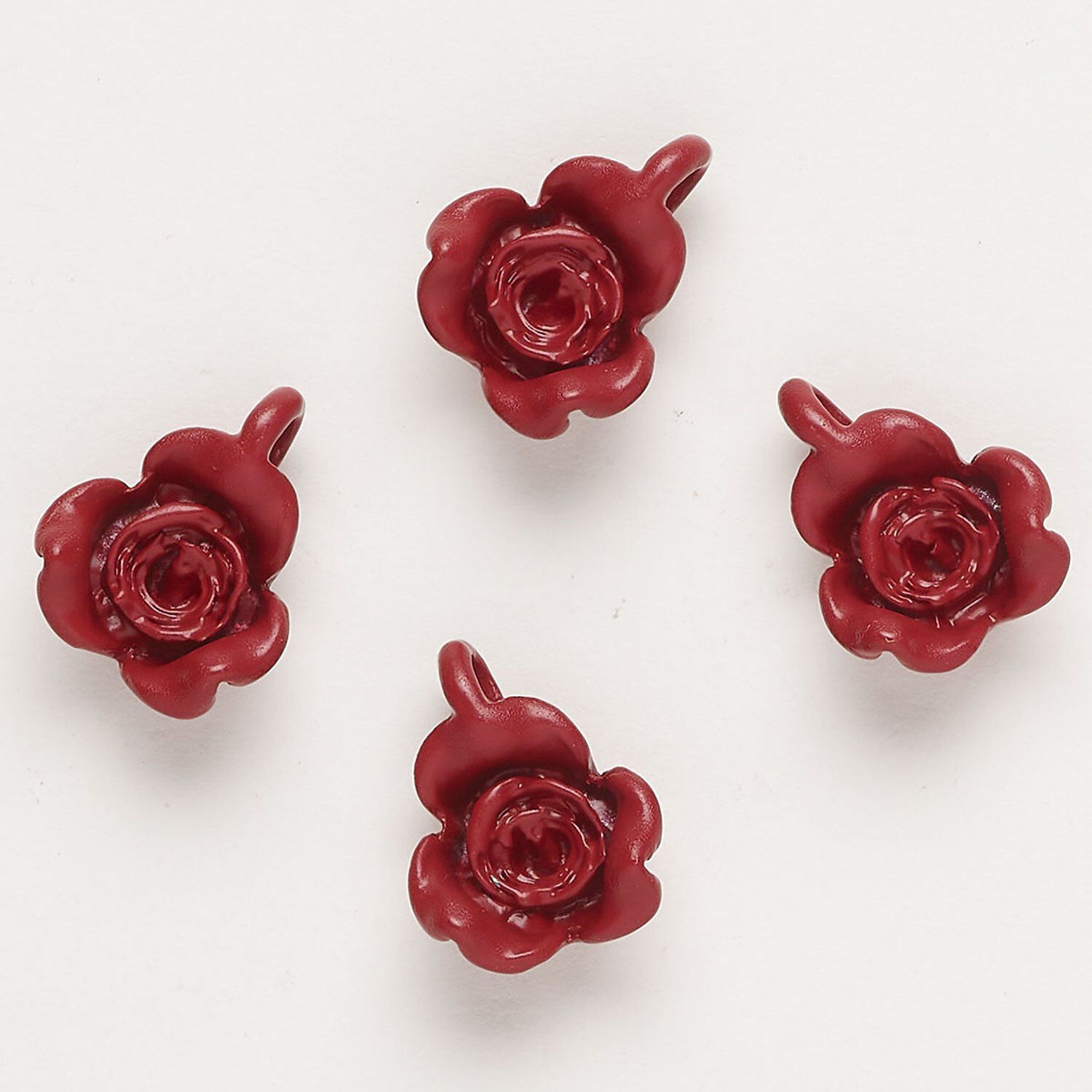 Charm, "pewter" (zinc-based alloy) and enamel, dark red, 17x13mm flower. Sold per pkg of 4.