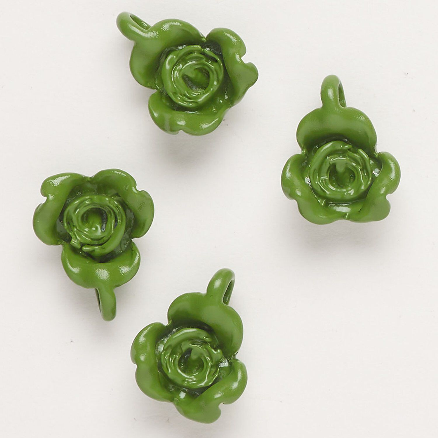 Charm, "pewter" (zinc-based alloy) and enamel, moss green, 17x13mm flower. Sold per pkg of 4.