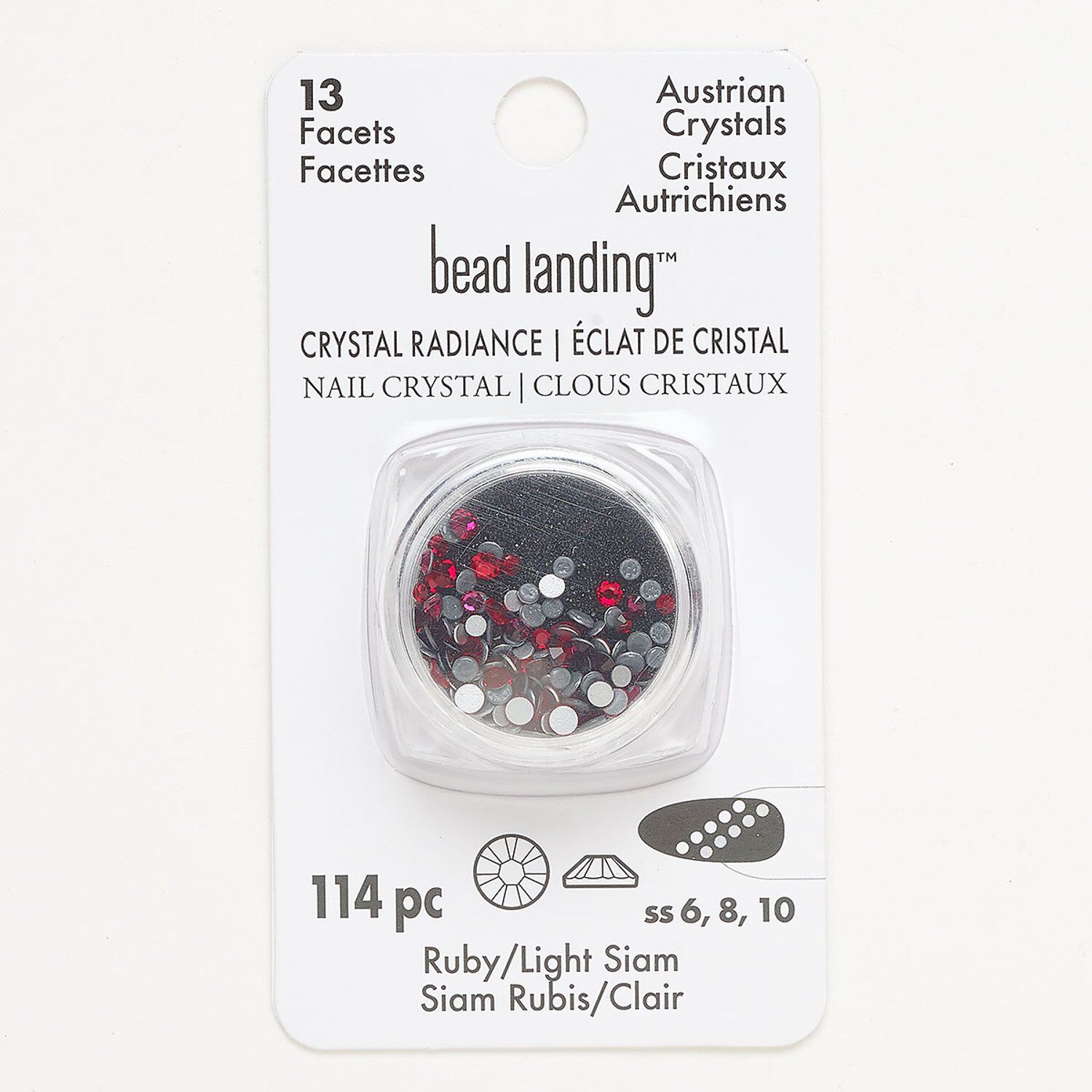 Flat back mix, crystal, ruby and light Siam, pkg/144, 2.00-2.90mm round, SS6/SS8/SS10.