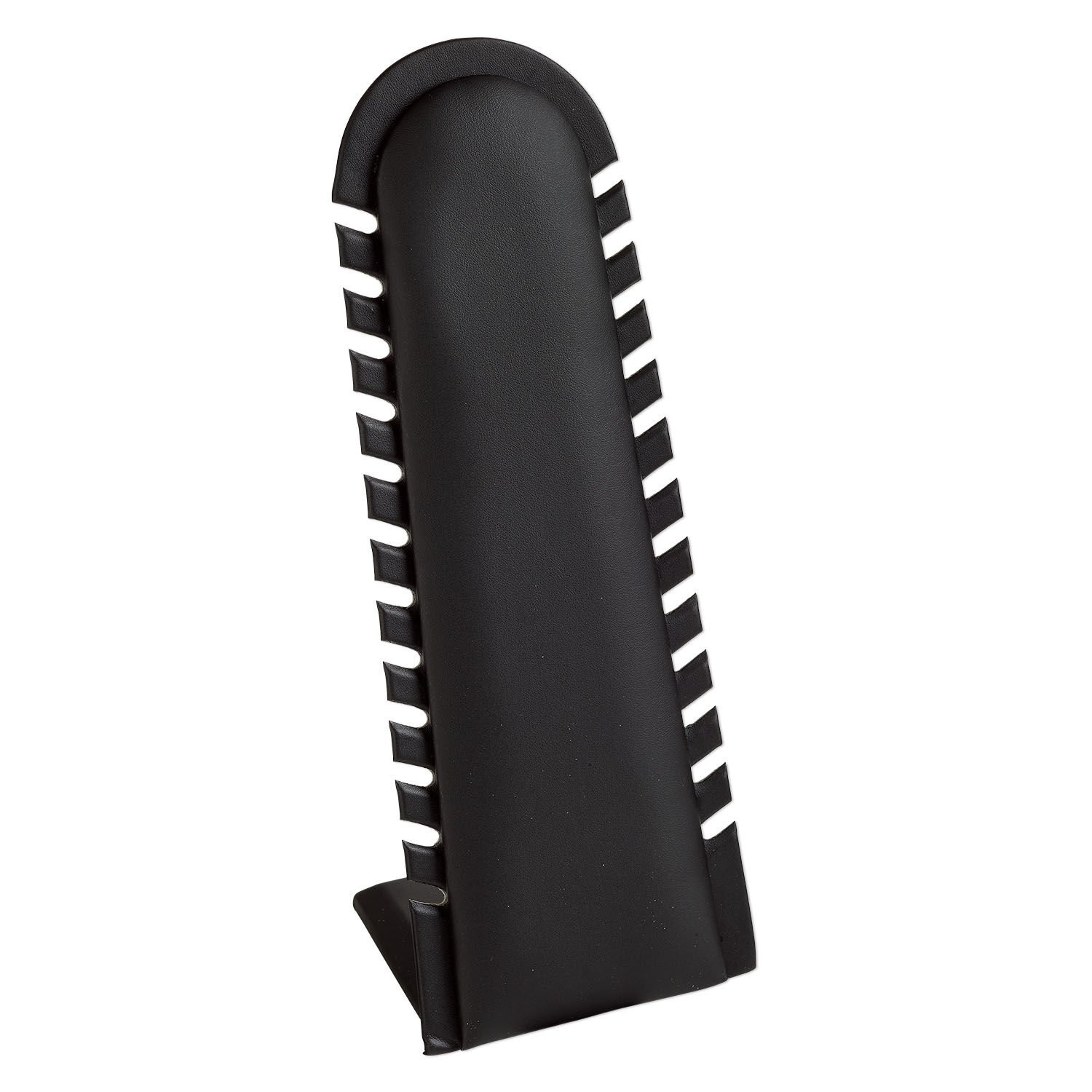 Add a professional look and save space in jewelry presentations with this standing display and its tight, vertical design. Each lightweight display is covered in soft-to-the-touch Nabuka leatherette and includes a dozen slots for showcasing jewelry.