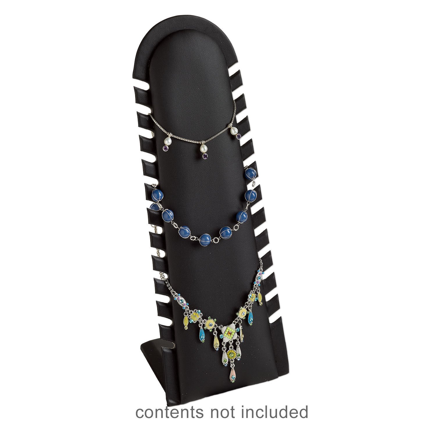 Display, 12-strand necklace, Nabuka leatherette and cardboard, black, 12-1/4 x 4-1/2 x 3-1/2 inch. Sold individually.