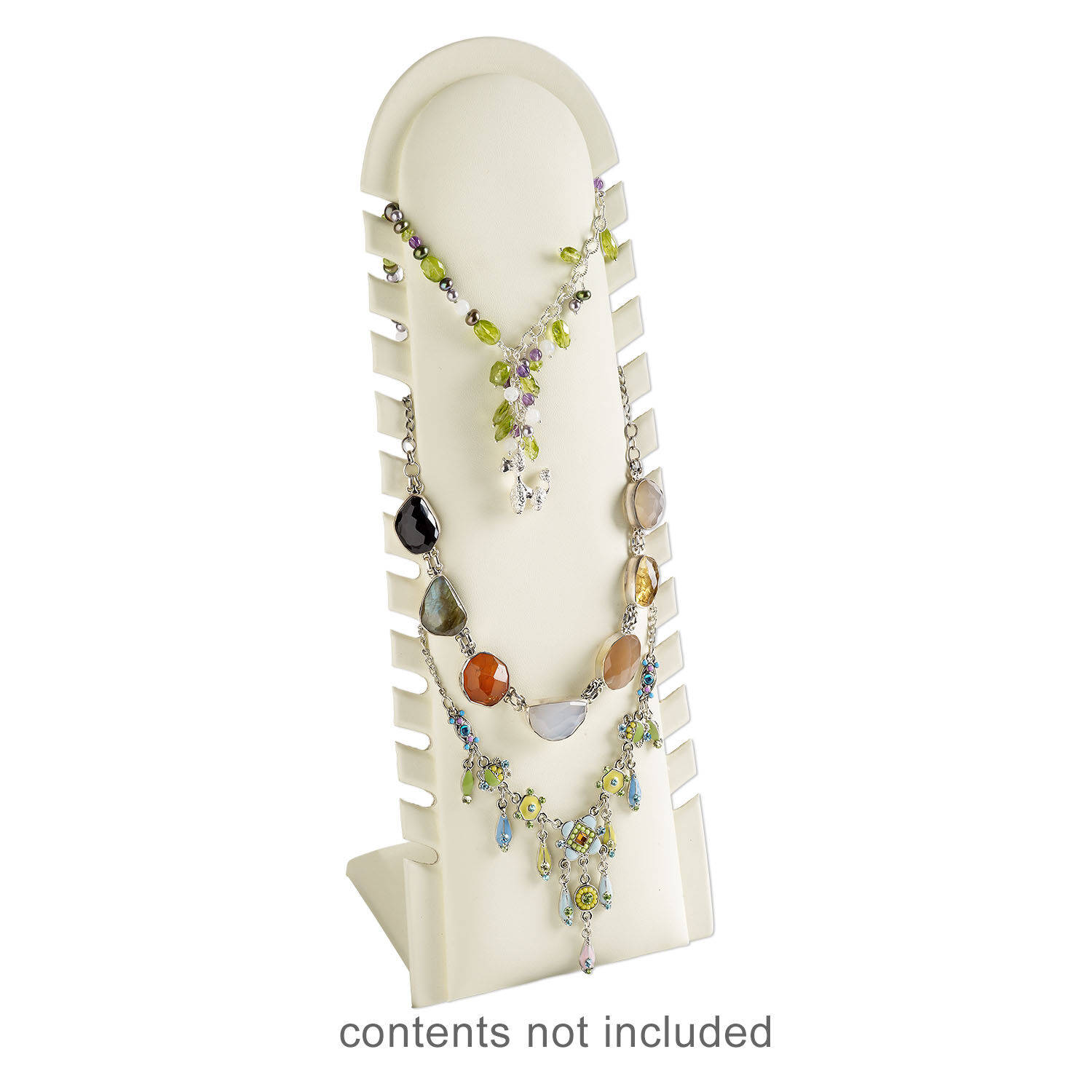 Display, 12-strand necklace, Nabuka leatherette and cardboard, cream, 12-1/4 x 4-1/2 x 3-1/2 inch. Sold individually.