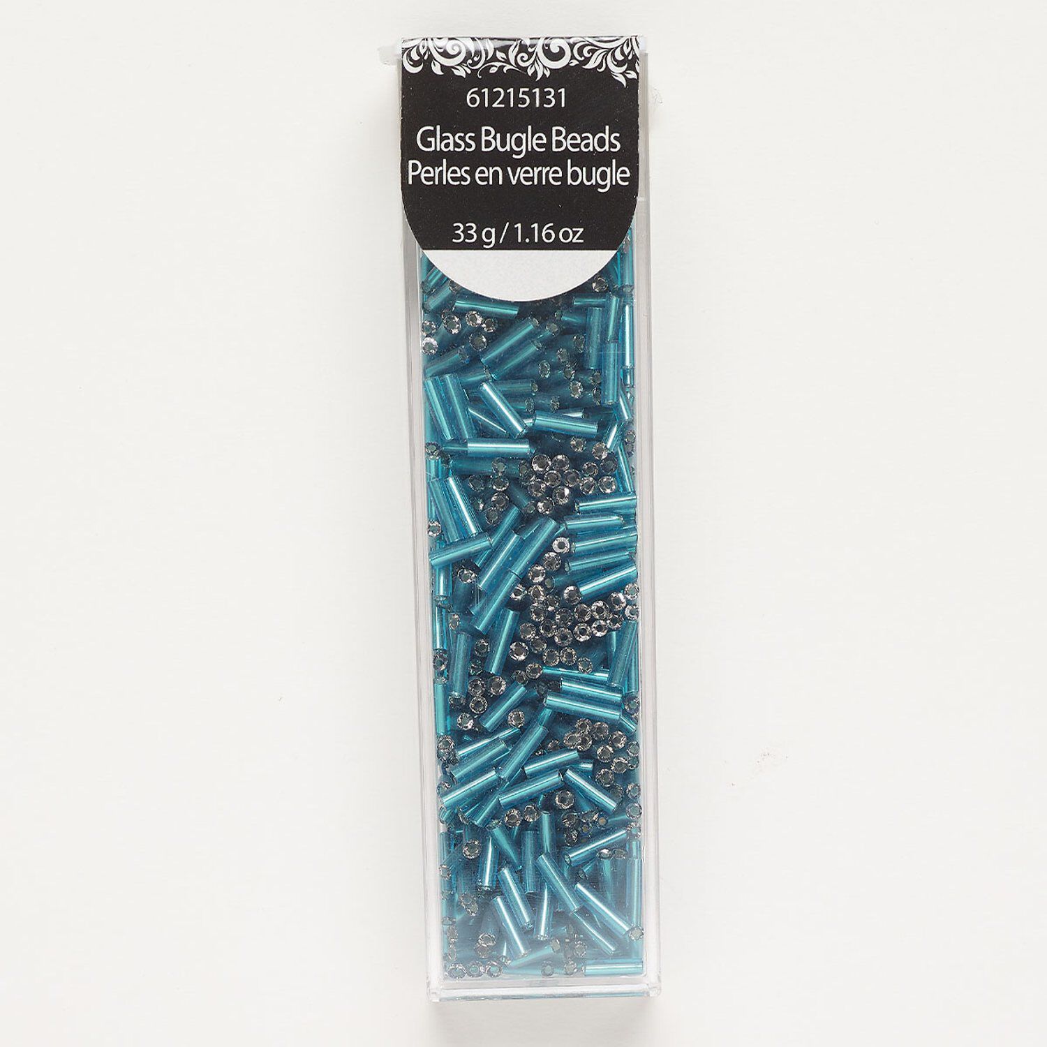 Bead, bugle bead, glass, pkg/33g, 6x2mm-7x5mm tube, silver-lined teal.